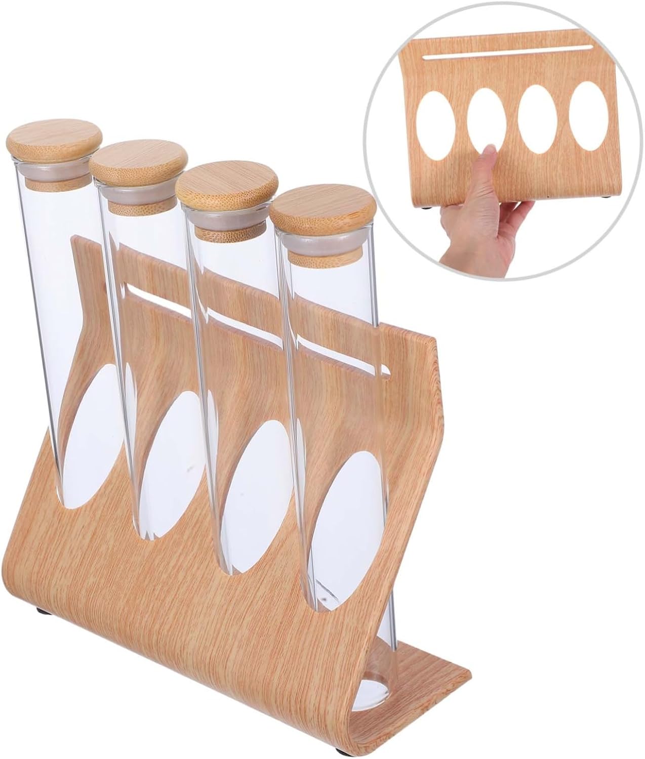 Package List 1 4 x bottle Characteristics -Material: Wood and tubes -Size: 20.80X19.80X6.00cm/8.17X7.78X2.36in coffee bean tube container - Applicable scene: suitable for all kinds of occasions, teahouses, bars, cafes, restaurants, kitchens, etc coffee bean container. - Multi-functional storage jar: This thick multifunctional glass storage tube perfect for storing and preserving a variety of ingredients including preserves, jams, chutneys, rice, sugar, flour, tea, coffee, spices, biscuits, etc Clear Glass Bottle. -Color:Light Brown coffee beans storage tubes - Made from , perfect for nuts packaging tea glass container tubes. - Displays your favorite chemistry-inspiring shot glasses and is also great for keeping your favorite ground spices and within reach while you cook coffee bean test tubes.Goods Descriptioncoffee beans glass tube These are mini coffee beans display rack and glass bottle, this multifunctional glass storage tube perfect for storing and preserving a variety of ingredients including preserves, jams, chutneys, rice, sugar, flour, tea, coffee, spices, biscuits, etc
