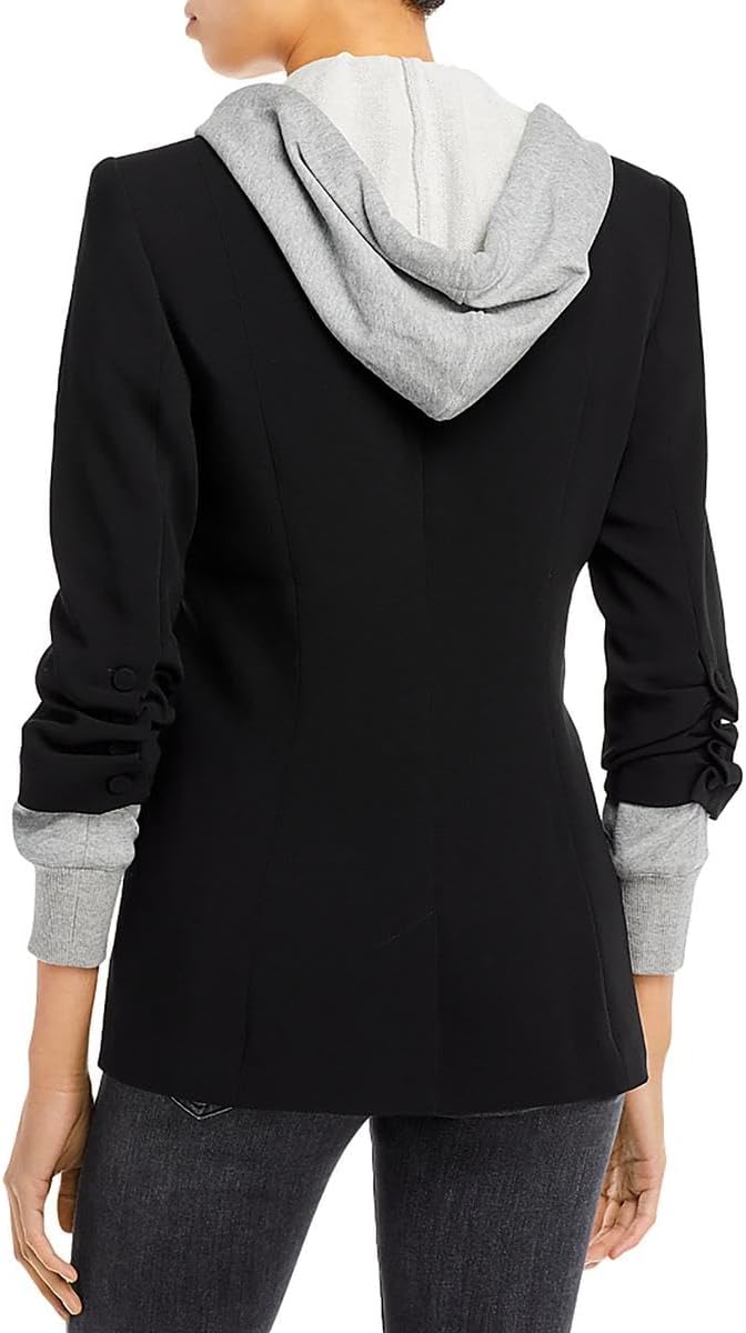 Be ready for any occasion in the Hooded Khloe Blazer. Crafted with Drapey Crepe, a french terry underlay, and a drawstring hood, it's designed to flatter your silhouette. The hood and stylized sleeves add a touch of unique style. Stand out—make a statement in the Hooded Khloe Blazer.