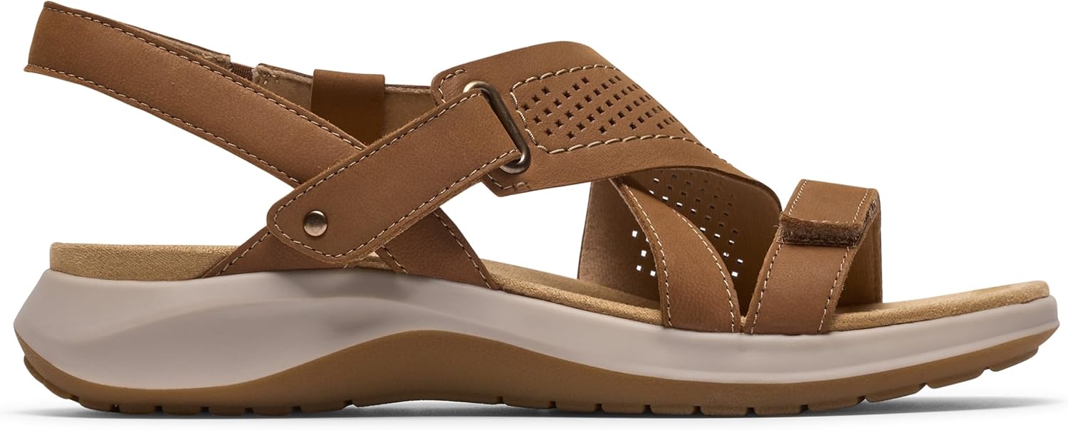 Clarks Collection Maelynn Gem is a versatile sandal designed to be a companion to the beloved Laurieann. Crafted from premium nubucks, it features iconic rand detailing and a more casual, crafted aesthetic. With a 5mm Ultimate Comfort PU foam footbed and adjustable hook and loop closures, this shoe guarantees all-day comfort and support. - Premium soft nubuck upper with studded metal accents - 5mm Ultimate Comfort PU foam footbed delivers all-day cushioning and support - Hook and loop closures and loop back ring offer optimal adjustability and a secure fit - Smooth jersey upper lining has a soft feel against the foot - Soft microfiber sock lining promotes breathability and comfort - TPR outsole provides grip and flexibility - Heel height: 35mm