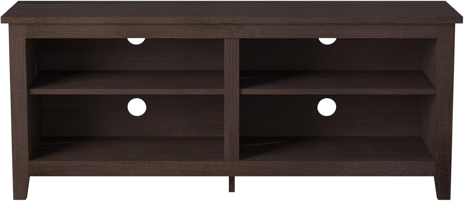 Whether it’s a compact apartment or a lavish mansion, everyone needs a versatile TV stand. This modern TV console does just the trick. Its open design offers ample storage space for your home goods. Four cubbies are available for all stowing or decorating needs. See which designs you like best by taking advantage of its style-flexible look. Maybe this week it’s farmhouse? And maybe next week, coastal? Use the cord management ports to keep your cords neat and tidy. Warp-resistant MDF for a long-lasting build Durable, textured wood grain laminate 2 adjustable shelves 4 cord management ports Accommodates TVs up to 65” Ships ready-to-assemble with step-by-step instructions Supports up to 250lbs. 4 open storage spaces