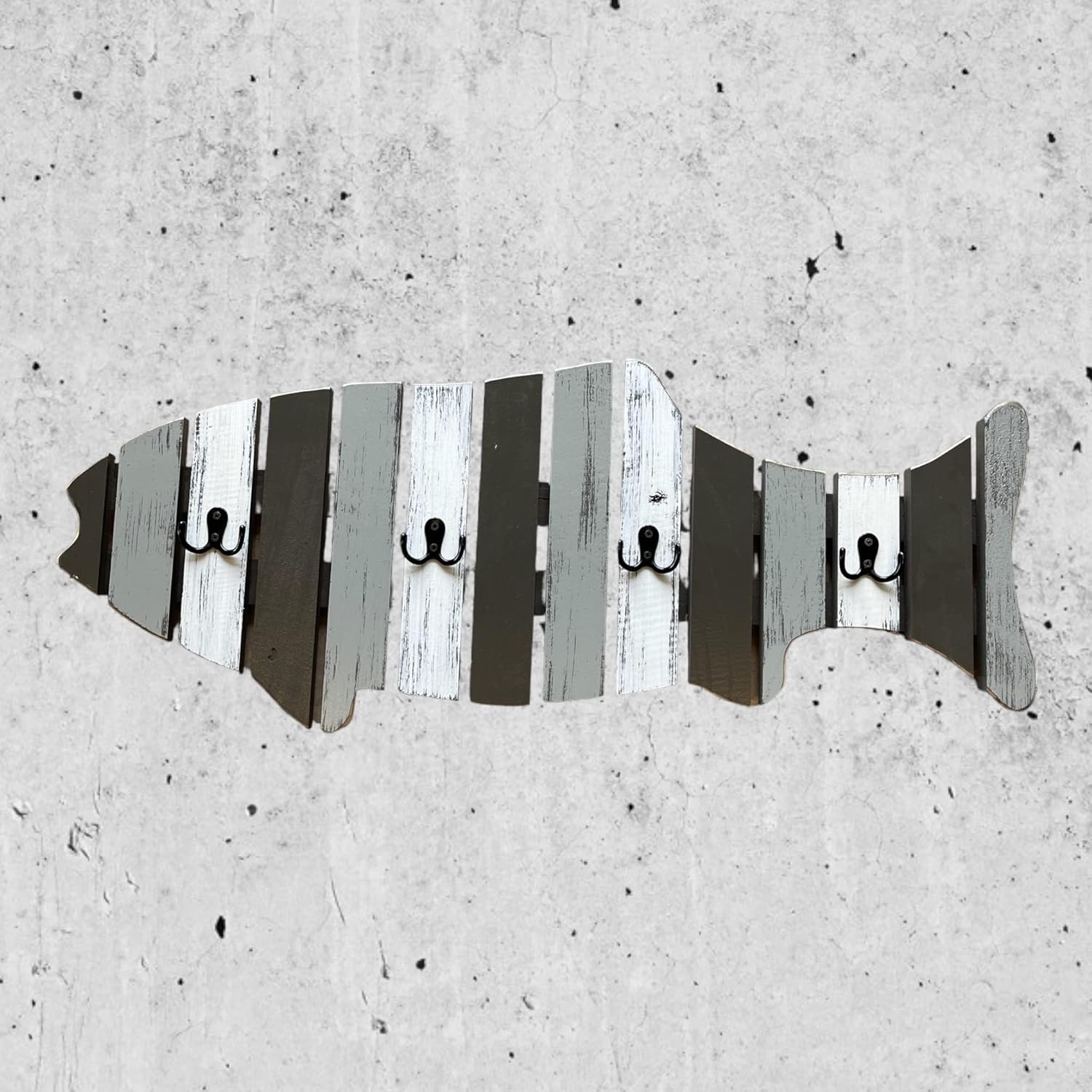 This Fish with hooks is a perfect coat rack or towel rack! It's sturdy, unique, great for a lake home, cabin, bathroom, or for any fish lover (fisherman)! It would make a great gift as well! *This is a beautiful handcrafted wood fish with metal hooks.