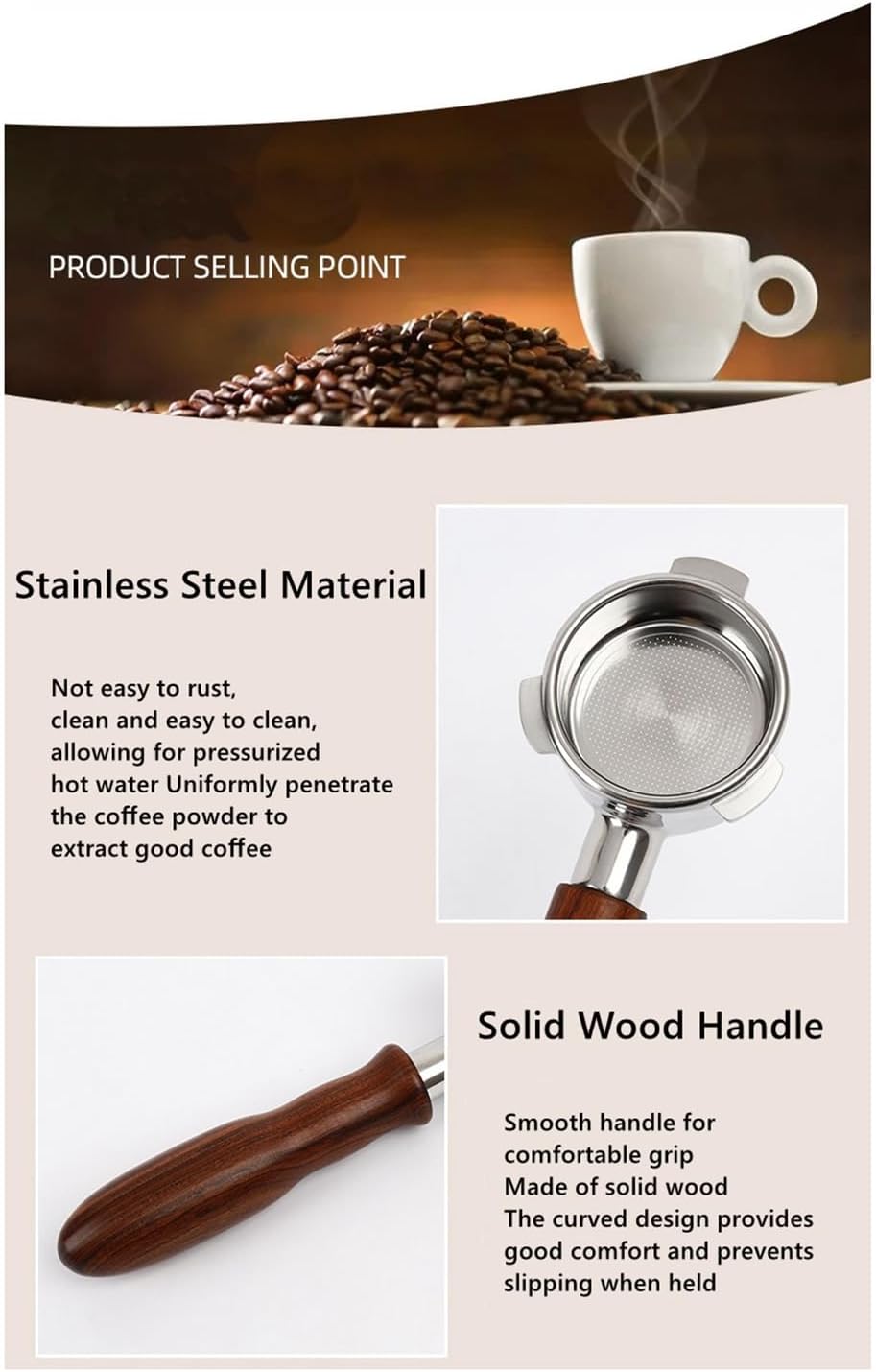 Experience the perfect blend of style and functionality with this stainless steel coffee machine handle. Crafted from premium 304 stainless steel, it boasts a sleek and durable design that will elevate your espresso machine's appearance. The ergonomic wooden handle offers a comfortable grip, allowing you to effortlessly operate your machine. This handle comes equipped with a 3-ounce filter basket, ensuring precise coffee extraction and a rich, flavorful brew every time. Its versatile design makes it compatible with various espresso machine models, making it a practical choice for coffee enthusiasts. Upgrade your coffee-making experience with this stylish and practical accessory.