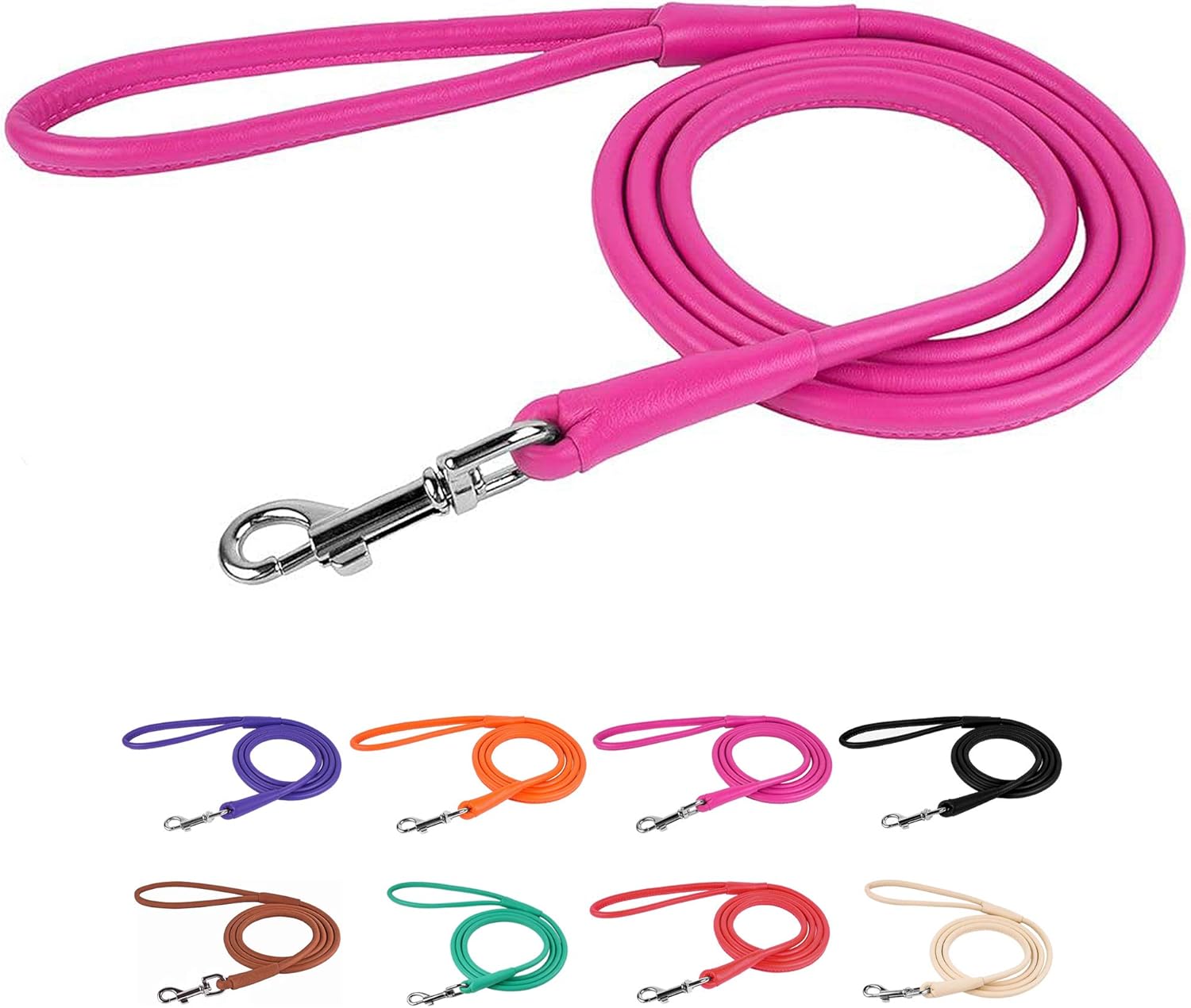 CollarDirect Rolled Leather Dog Leash 4ft, Soft Padded Training Leather Dog Lead 6ft, Puppy Leash Rolled Leather Small Medium Large Black Blue Red Orange Green Pink White (Purple, Size L 6ft)