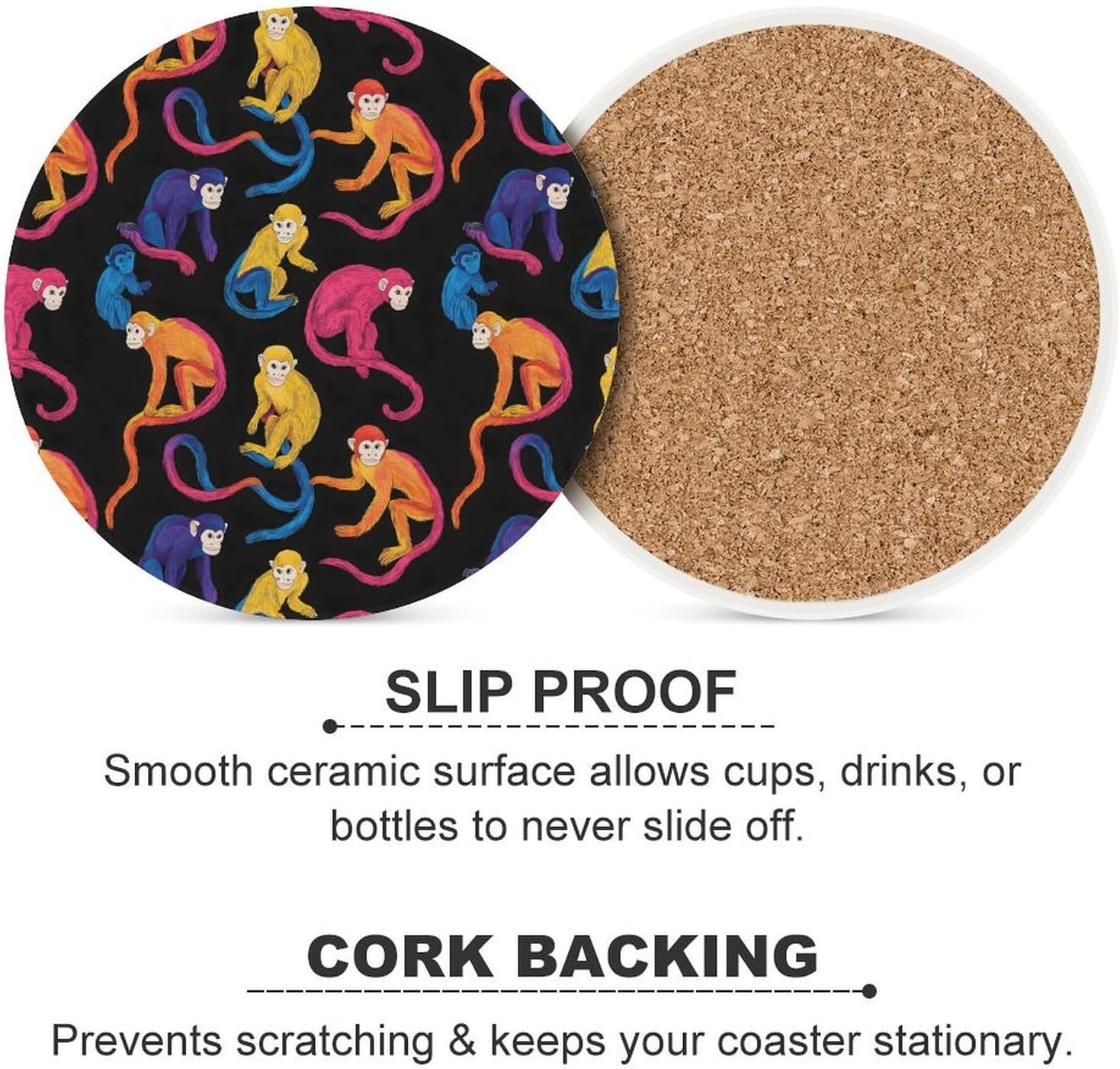 Ceramic Coaster with Cork Base Funny Absorbent Coasters Set Suitable for Kinds of Cups, the absorbent ceramic coasters comes with vibrant color and beautiful design, goes with everything