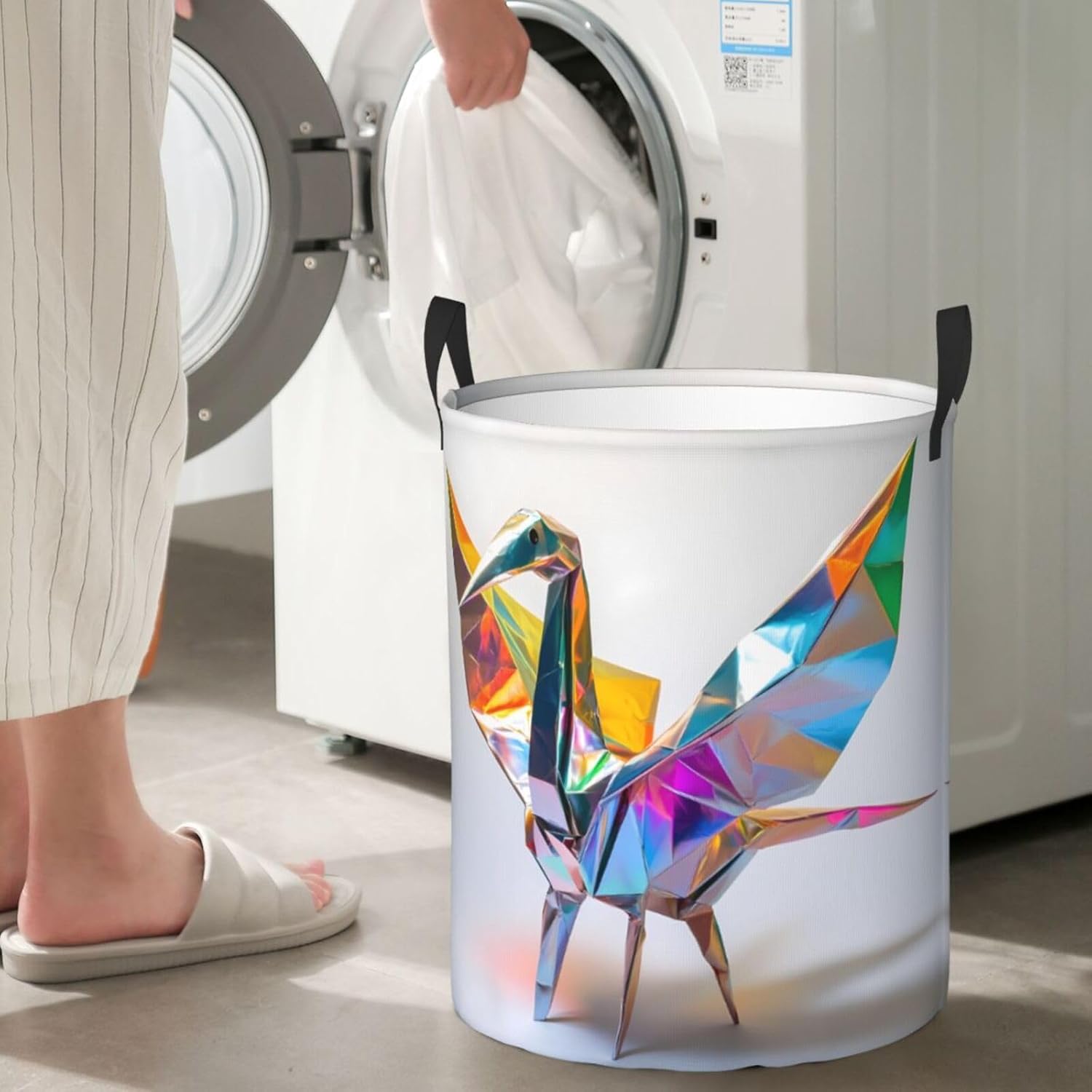 Our Colorful crane origami circular single-layer dirty clothes basket. It is made of 100% polyester Oxford cloth, which is durable and water-resistant, and can keep the items inside clean and dry in a humid environment. It has excellent performance, can stand up and is not easy to fall. The single-layer fabric is equipped with two comfortable handles, and the bag mouth has a PE support strip. It is widely applicable to kitchens, living rooms, bathrooms, closets, game rooms, cars, etc. It can store clothes, toys, books, etc. to ensure durability. It has become a good helper for daily storage with its excellent performance, wide applicability and beautiful design