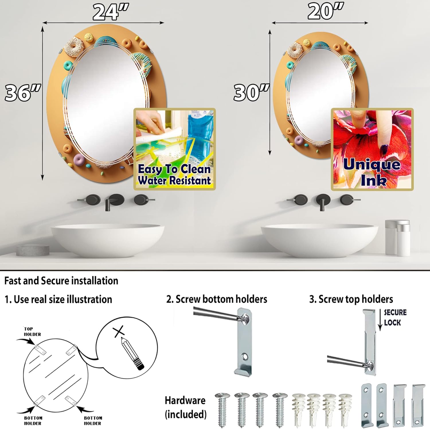 Display this beautiful wall mirror over your sofa or your bathroom vanity for an elegant touch. In an industry that has seen very little innovation over the years, DesignQ proudly brings you our exclusive collection of wall mirrors with printed designs. Mirrors, a staple decor item in every home have now become more than just a mirror, they have become piece of art. All of our wall mirrors are carefully inspected prior to shipping and packaged securely with several layers of protective packaging, ensuring a safe delivery. Every mirror arrives ready to hang on the wall with drywall anchors and screws. Oval Mirror Measurements in INCHES: -20" x 30" -24" x 36"