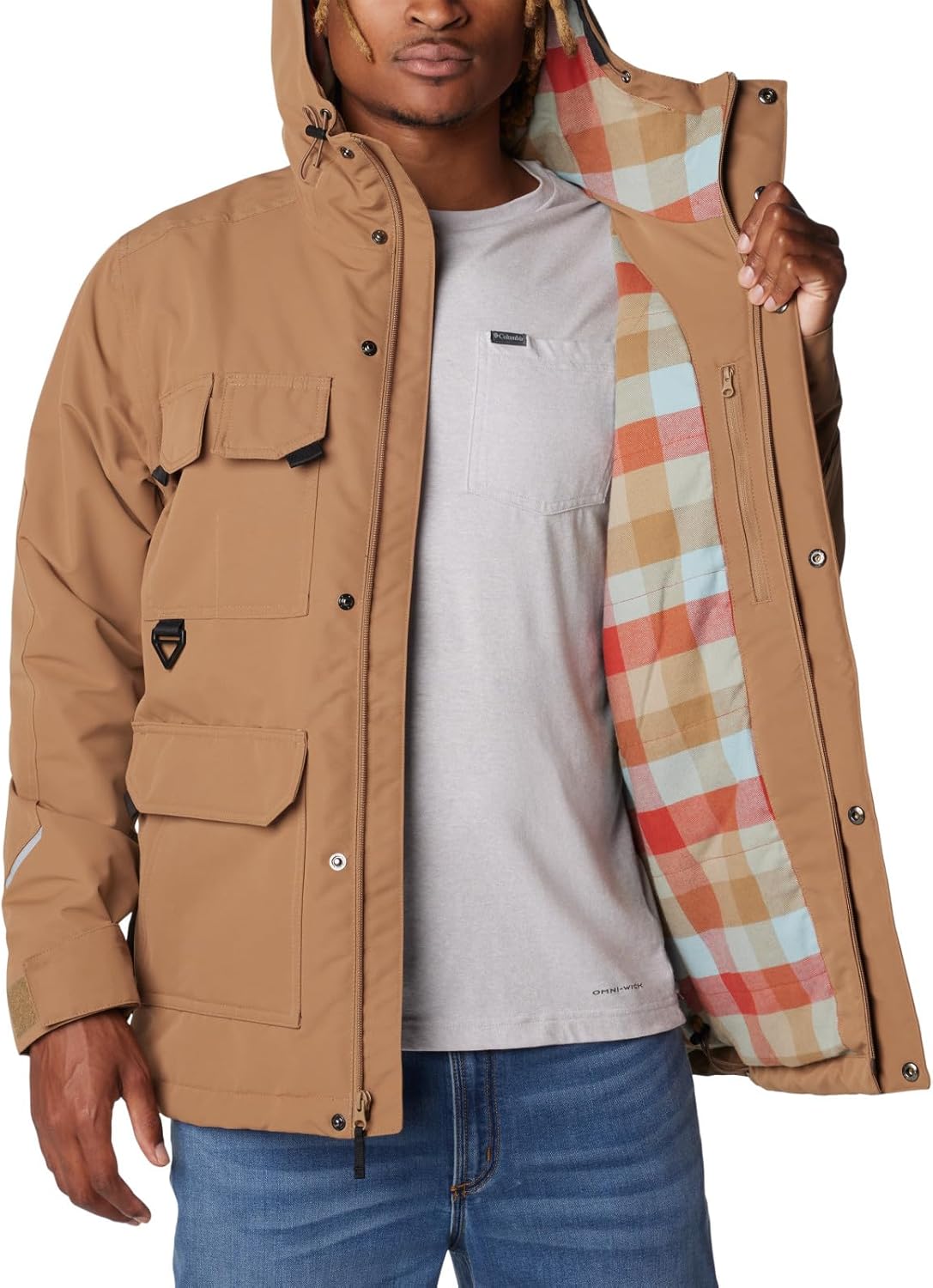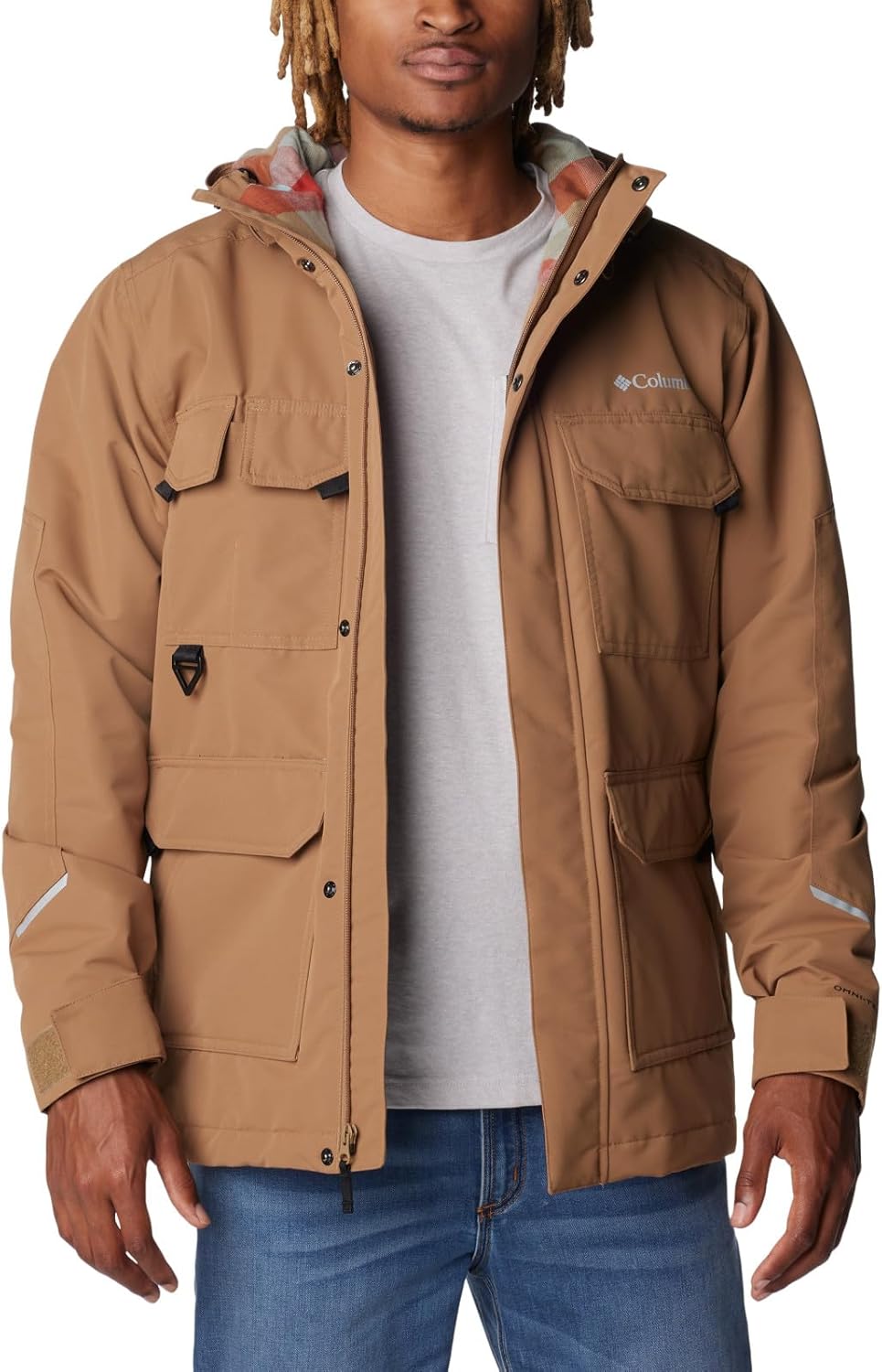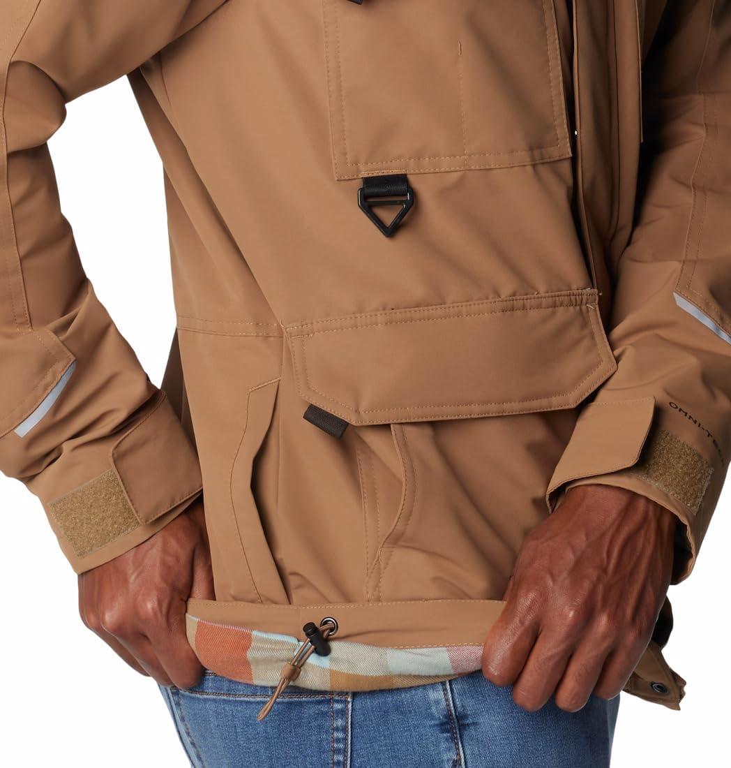 Waterproof, insulated, and dependable, this jacket will make cold, rainy days your favorite kind of weather. It’s lined with soft flannel for next-to-skin comfort and is fully loaded with hard-working features, like reflective detailing, a handy D-ring, and a multitude of pockets. Columbia offers this jacket in multiple colors and sizes. Regular fit.
