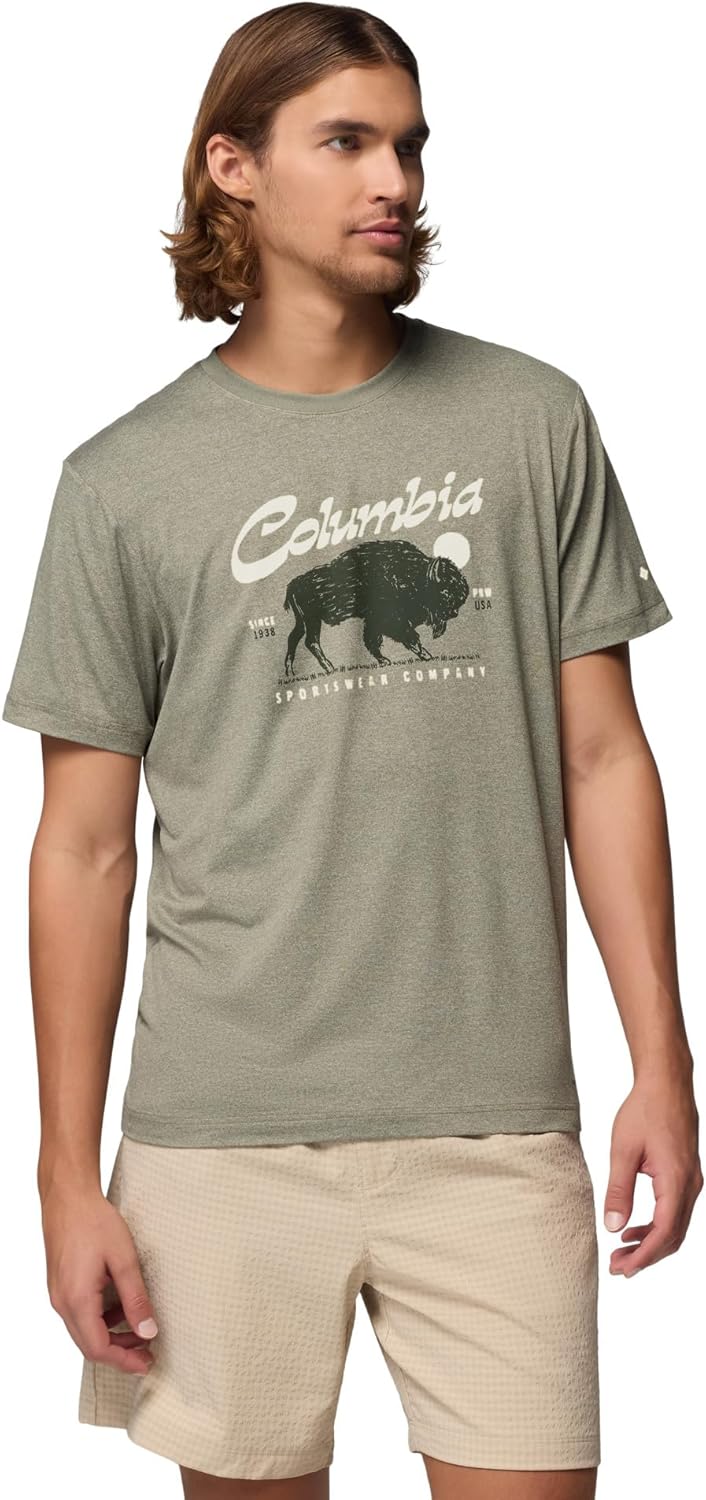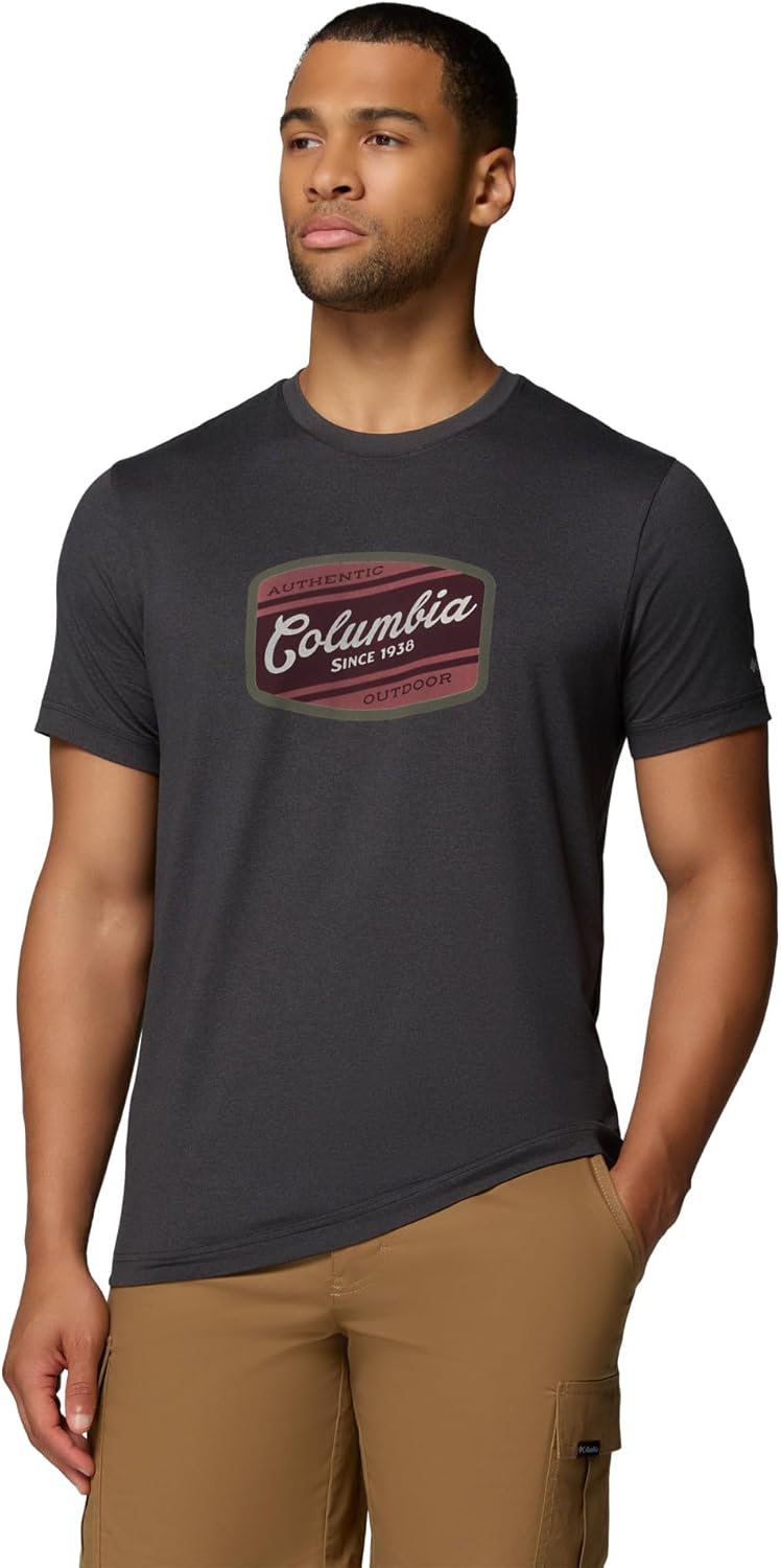 Trekking, traveling, training, whatever. With sun-blocking, moisture-wicking fabric, this performance tee lets you confidently and comfortably flow between high-output activities. One shirt, infinite options. Columbia offers this shirt in multiple colors and sizes. Extended sizing available. Active fit.
