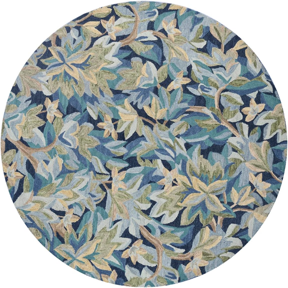 Inspired by an antique tapestry, Avalonian is hand-tufted with plush wool yarns specially dyed for a modern vintage feel. Lushly accented with leaves and flowers set against a ground of indigo, this area rug creates a secret garden in any room. Made in India. GoodWeave certified.
