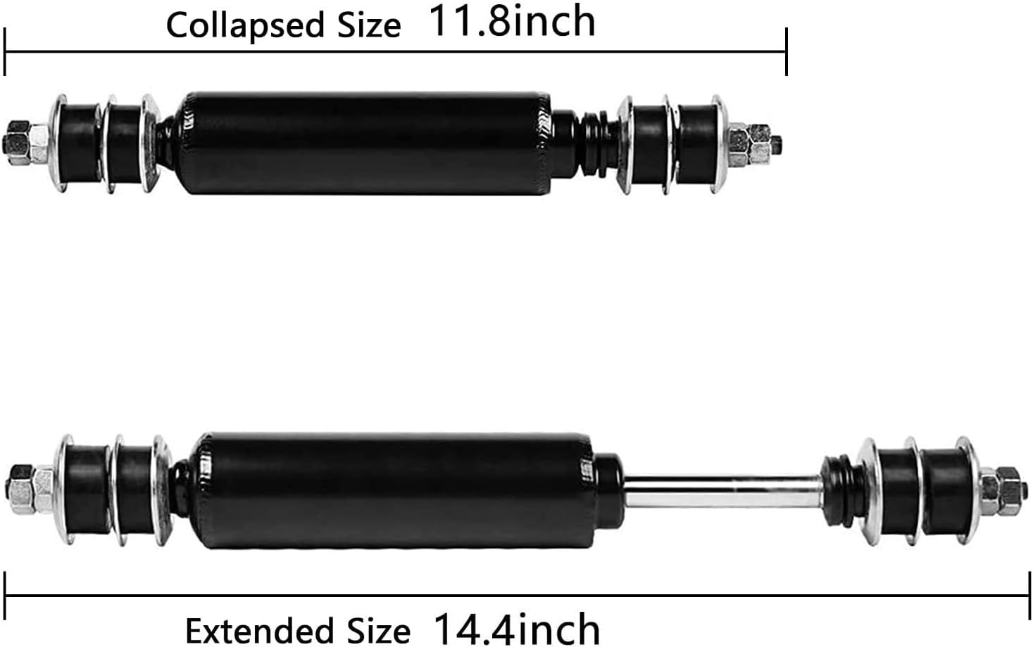Compatible with Club Car DS / Precedent / Tempo Rear Shocks: Compatible with Club Car DS Electric 1981-up & DS Gas 1997+, Precedent Electric and Gas 2004-up, and Tempo 2018-up golf carts. Suitable for golf cart Club Car DS / Precedent / Tempo Rear Shocks, Not for ClubCar Front Absorbers: Suitable for Club Car DS / Precedent / Tempo Rear Shocks. You can use this pair of Shock Absorbers to replace your Club Car DS / Precedent / Tempo Rear Shocks, if you want to replace all of the Front and Rear shocks, you'll need to order our other items “Club Car Front Shocks”. Long 14-1/2" extended: The shocks are approximately 11-3/4" retracted and approximately 14-1/2" extended. Contains only One pair: Contains only One pair of Rear Shock absorbers and includes All necessary bushings, cup washers and nuts of one pair shock. Replacement OEM#: 1013164, 102588501, 1014236, 1012183, 1027064-01