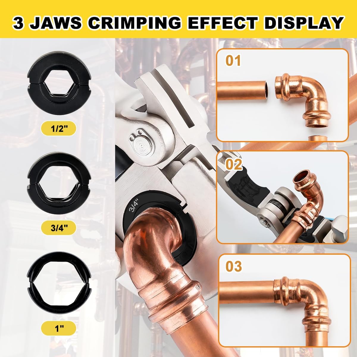 | Included Components | 1 crimping pliers, 3 copper tube crimping die jaws: 1/2, 3/4, 1" |