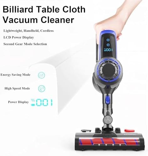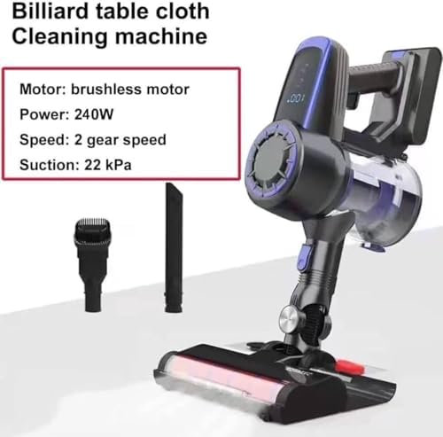 Tired of tangled wires while cleaning your billiard table cloth? Our Cordless Vacuum Cleaner is here to make your cleaning routine hassle-free and efficient. **Product Features:** 1. **User-Friendly Digital Touch Screen:** Navigate effortlessly through settings for a streamlined cleaning experience. 2. **Two Suction Levels:** Choose from a gentle suction setting for daily maintenance or switch to maximum suction for deep cleaning—tailor your approach to your specific needs. 3. **Versatile Brush Heads:** Includes two specially designed brush heads that effectively reach into gaps, picking up dust, hair, and debris with ease. 4. **Large-Capacity Dust Bin:** Effortlessly empty the dust bin with a simple button press, ensuring prolonged performance and convenience. 5. **Detachable Consumables:** Simplifies daily maintenance—just wash and allow to air dry for a cost-effective and practical cleaning solution. **Specifications:** - **Motor:** Brushless motor - **Power:** 240W - **Speed:** Adjustable two-speed settings - **Suction Power:** 22kPa - **Charger:** 26.5V/400mA - **Battery:** 22.2V/2200mAh - **Dimensions:** 32.8*27.6*23.8cm - **Weight:** 3.3kg **Package Includes:** - 1 Pool Table Cleaner - 2 Brush Heads - 1 Charger **Important Note:** Please avoid exposing the tablecloth to water. The water tank is intended for tablecloth care agents or softeners only—do not fill with water. If a softener is unavailable, simply remove the water tank and use the vacuum as is. Transform your cleaning experience with our Cordless Vacuum Cleaner—designed specifically for maintaining your billiard table cloth with ease and efficiency.