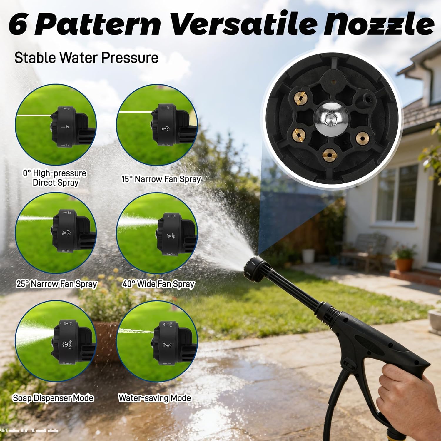 Introducing the Ultimate Cordless Freedom: Your Professional-Grade Cleaning Partner, Anywhere.Tired of dragging heavy hoses, hunting for power outlets, or settling for weak water pressure? Meet the Professional Fold Cordless Electric Pressure Washer – the game-changing, all-in-one mobile cleaning solution engineered for power, portability, and unmatched convenience. This isn't just another portable pressure washer; it's a compact powerhouse designed to tackle your toughest outdoor and home cleaning challenges with absolute ease.Uncompromising Power Meets Extended FreedomForget about underpowered devices. Our cordless pressure washer delivers a robust 660 PSI of max pressure, powered by a massive integrated 20000mAh lithium battery. This combination ensures you have more than enough muscle to blast away stubborn mud, grime, grease, and moss from driveways, patios, and vehicles. Enjoy the liberty of cordless power washer operation with an industry-leading runtime, allowing for extended cleaning sessions on a single charge—perfect for large projects or multiple tasks back-to-back.Engineered for True Portability & Smart StorageThe genius lies in its design. As the ultimate portable cordless pressure washer, it features a large 3.4-gallon collapsible water tank and a space-saving foldable frame. In minutes, your entire portable pressure washer cordless kit transforms from a compact, easy-to-carry box into a fully operational cleaning station. Stow it effortlessly in your car trunk, RV, boat, or garage closet, ready for any adventure or spontaneous chore.Precision Cleaning with Professional VersatilityEquipped with a versatile 6-in-1 nozzle and a dedicated foam cannon, this tool adapts to every surface. Switch seamlessly from a intense 0° jet for cemented dirt, to a wide 40° fan for patio furniture, or create a rich foam blanket for a luxurious car wash. Whether you're a detailing enthusiast or a homeowner, this cordless power washer provides professional-grade results. The included long hose extends your reach, making it easy to clean roofs, second-story sidings, or the far side of your vehicle without moving the unit.Intelligent Control at Your FingertipsTake command with the intuitive 7 adjustable pressure levels and the clear LCD display. The screen provides real-time feedback on battery life and pressure setting, putting you in complete control. Gently rinse delicate garden plants, wash your pet, or powerfully degrease your grill—all with one intelligent device. The thoughtful addition of removable wheels makes maneuvering this portable pressure washer over rough terrain or around your property exceptionally smooth.