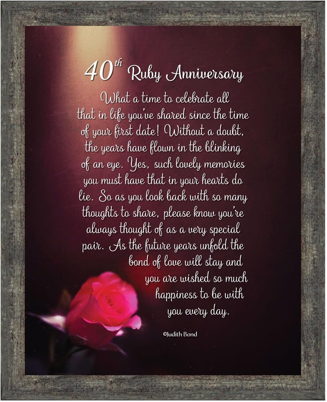 • Looking for a perfect 40th anniversary gift? This unique picture frame features a poem and a picture of a red rose, beautifully capturing the spirit of this incredible milestone. It's not just a wedding picture frame, it's a token of enduring love.
