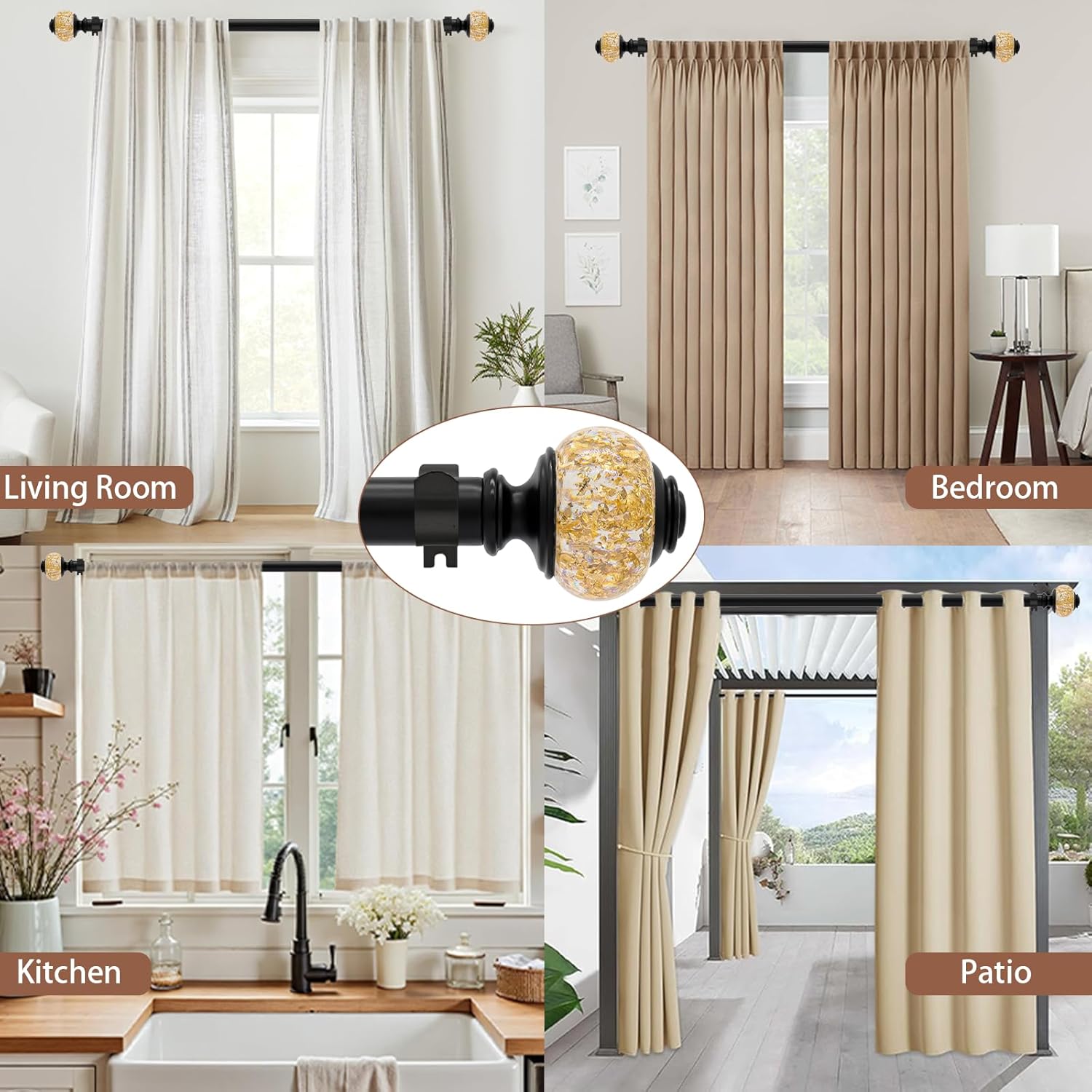 | Included Components | Brackets, Crystal Translucent Finials, Curtain Rods, Mounting Hardware |