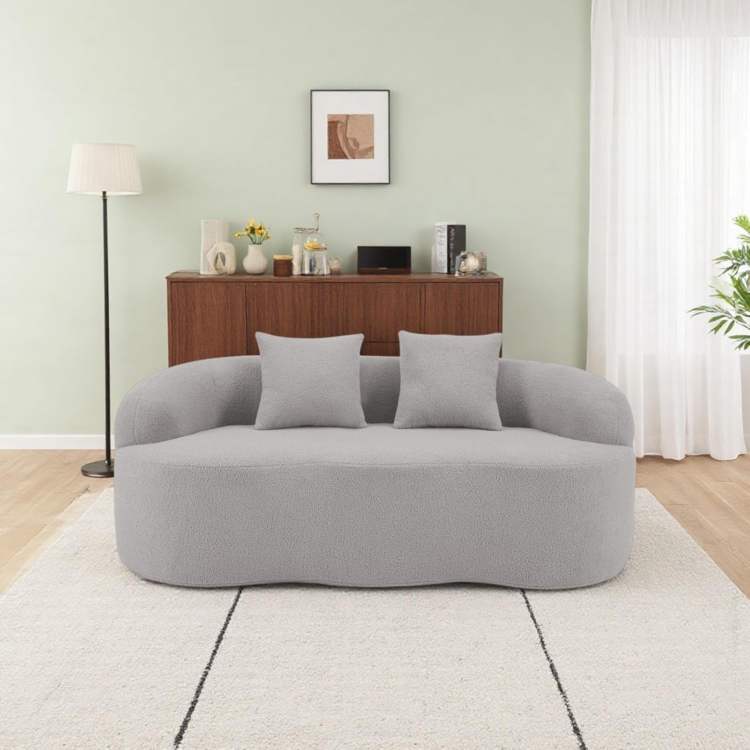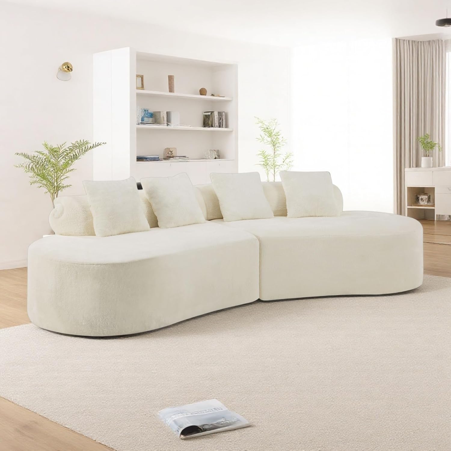 Trygoal Curved Multi-Seater Sofa, Modern Modular Sofa with Cylindrical Backrest & 4 Coordinating Pillows, 111'' Flannelette Leisure Combination Couch with Ergonomic Design for Living Room, White