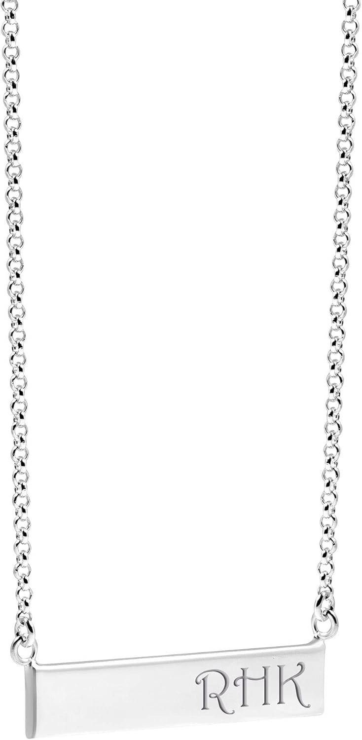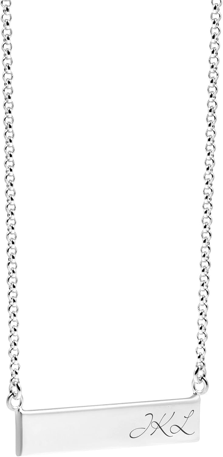 Simple, elegant, and deeply personal — our Personalized Sterling Silver Name Bar Necklace is the perfect keepsake for everyday wear or special occasions. Crafted from genuine .925 sterling silver, this minimalist horizontal bar pendant can be custom engraved for free with your name, initials, date, coordinates, or a short message. Choose from many different font styles. The modern, polished design pairs beautifully with any outfit, making it a timeless addition to your jewelry collection. Whether you’re treating yourself or gifting a loved one, this engraved name bar necklace captures meaning and style in one elegant piece. Complete with a matching chain, it’s a timeless piece of jewelry perfect for everyday wear or as a thoughtful gift for birthdays, anniversaries, weddings, or special occasions. Gift Box Included. Pendant measures 1.25" x 0.2" Chain: 16" to 18"