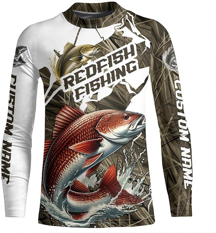 Custom Redfish Fishing Tournament Jerseys, Redfish Long Sleeve Fishing Shirts Camo