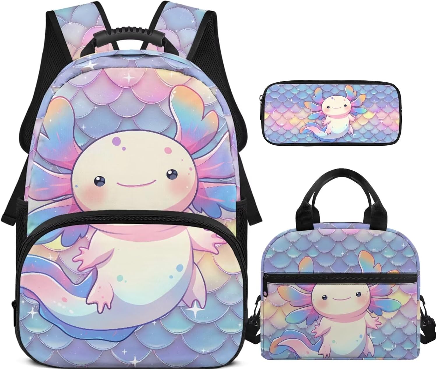 Are you looking for a school backpack set that not only meets all your child's organizational needs but also adds a touch of style and convenience to their daily routine? Look no further! Our comprehensive School Backpack Set is designed with your child's comfort, functionality, and personal expression in mind. This set includes a fully printed 17-inch backpack, a handy lunch bag, and a practical pen bag. From carrying books, stationery organized to keeping food fresh, it covers all bases. All crafted to make school days easier and more enjoyable. With a range of colors and designs, our backpack set not only looks great but also stands out in the crowd. It allows your child to express their personality while having a practical backpack that meets their school needs. Perfect for back-to-school or as a birthday present, this set is sure to delight. It's a thoughtful and useful present that will be cherished and used daily. Tips: The size may exist 1-2cm measurement error due to the size measured by hand.