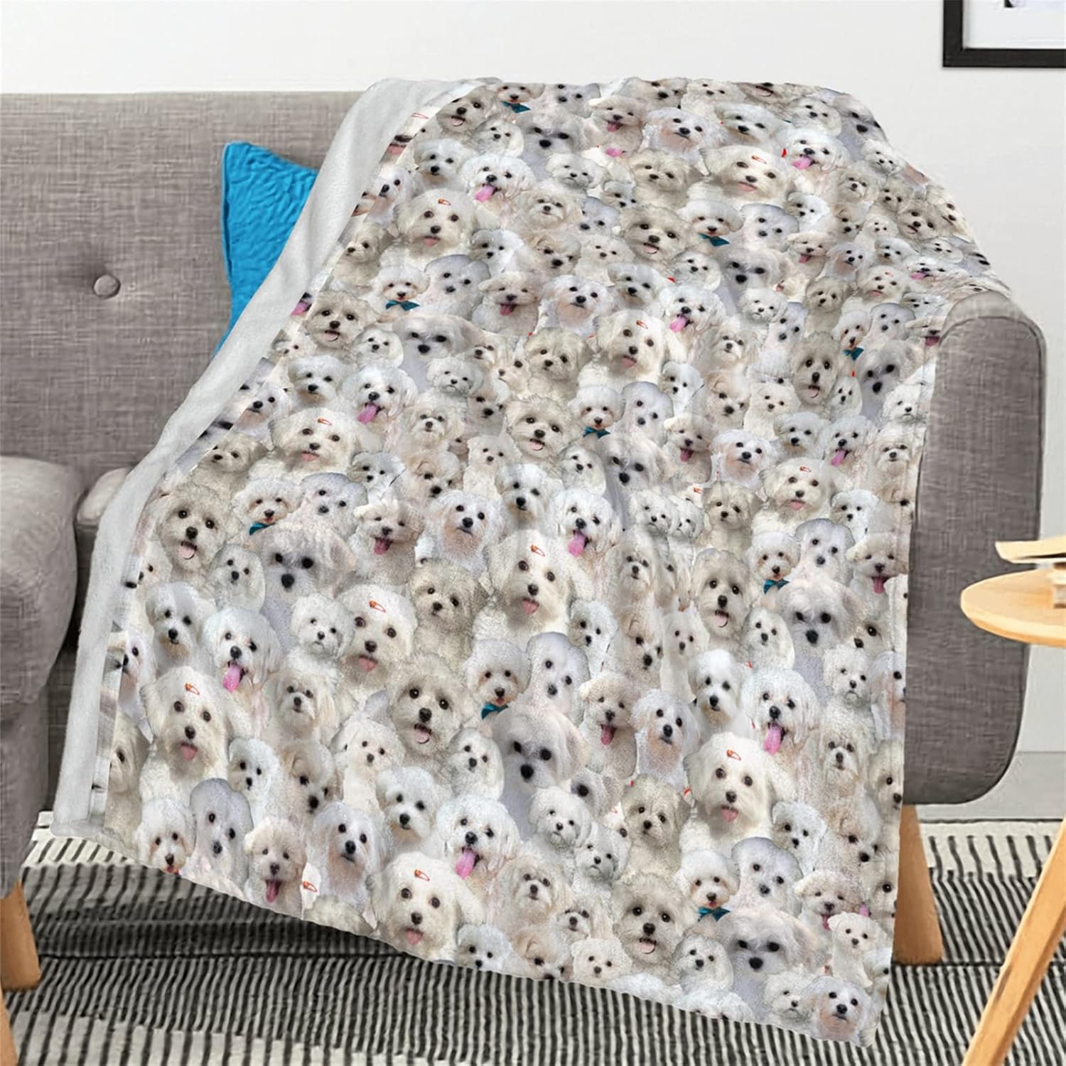 Our cozy and charming dog print blankets, the perfect gift for any dog lover! Crafted with love and attention to detail, these flannel blankets are designed to wrap you or your loved ones in warmth and the delightful company of adorable furry friends.Available in four convenient sizes, our dog print blankets cater to various needs and preferences. The 30x40in size is ideal for cuddling up on the couch or providing a comforting layer for your pet's bed. The 40x50in option offers a bit more room to snuggle in and enjoy a movie night with your four-legged companion.The 50x60in size provides a generous coverage, making it great for lounging or keeping cozy during chilly evenings. For those seeking the ultimate comfort experience, our 60x80in blanket offers an extra-large size to wrap yourself in and indulge in pure relaxation.The standout feature of our blankets lies in their captivating dog print designs. With a variety of breeds showcased in delightful and vibrant colors, these blankets capture the heartwarming essence of our furry friends.Whether it's the playful antics of a Labrador Retriever, the regal elegance of a German Shepherd, or the irresistible cuteness of a French Bulldog, there's a design to suit every dog lover's taste.Our dog print blankets are not only a cozy companion but also a perfect gift for birthdays, holidays, or any special occasion. Surprise a loved one who adores dogs, whether it's a family member, friend, or coworker, with a thoughtful present they'll cherish.These blankets are an excellent addition to any dog lover's home decor, adding a touch of warmth and canine charm to their living space.