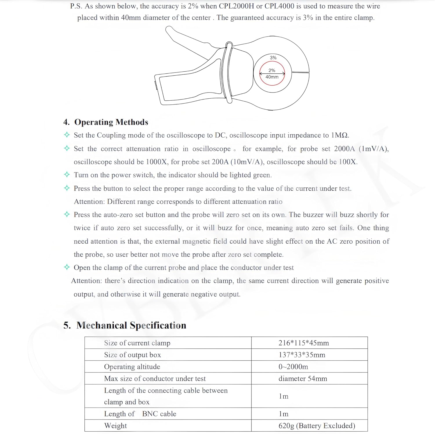 CYBERTEK Oscilloscope current probe Low Frequency AC/DC Current Probe CPL2000 2000A/10kHz CPL4000 4000A/5kHz with the peak current of 3000Apk/5600Apk(CPL2000 2000A/10kHz)