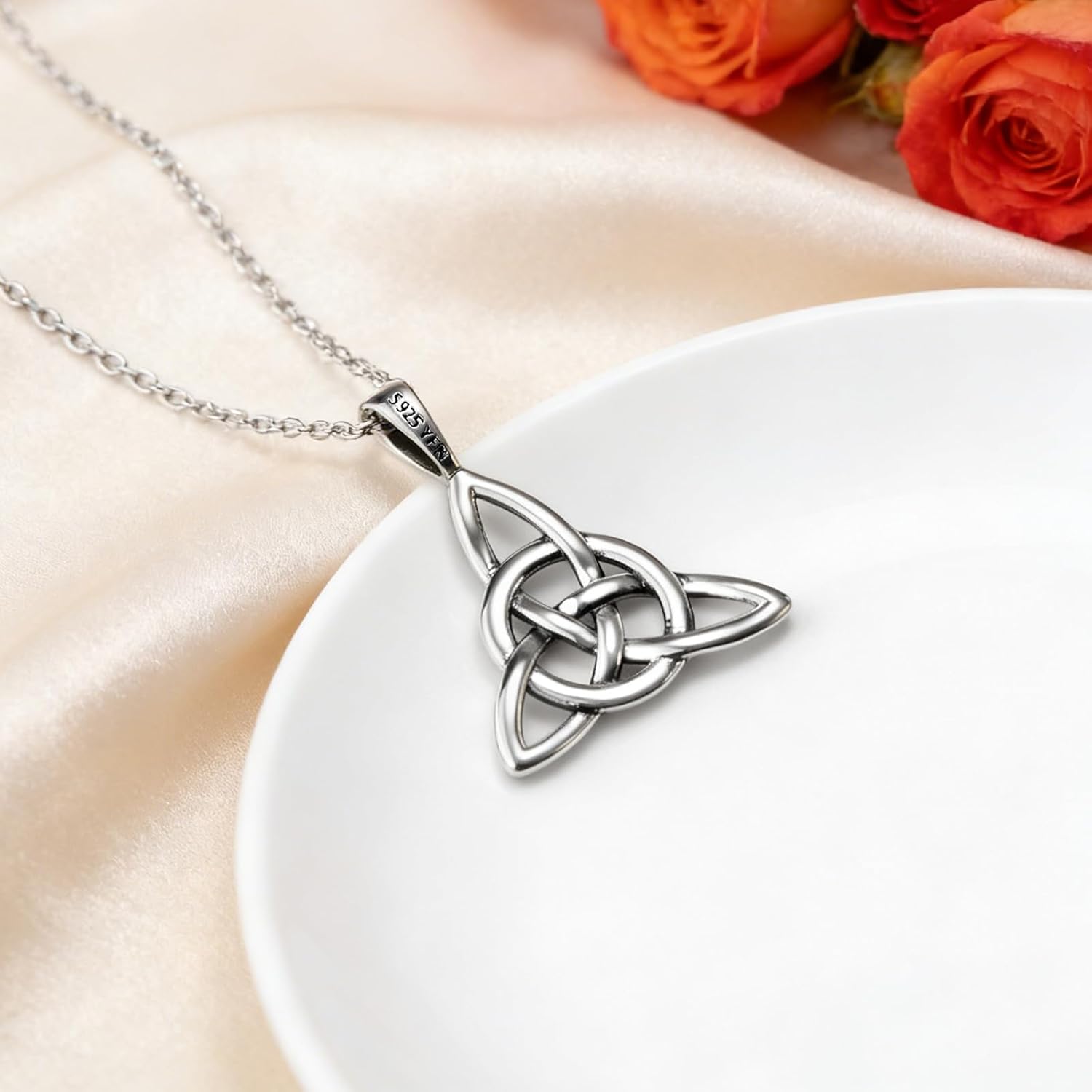 Celtic knot jewelry inspired by the interlacing and continuous designs prevalent in Celtic artwork. It is complete loops, without beginning and ending, It symbolizes life and eternity Take Care About The Jewelry Size Please take care about the jewelry size when you purchase, usually the sterling silver jewelry is smaller than the brass or alloy jewelry. Polishing cloths are an excellent choice for cleaning your sterling silver jewelry if oxidized and black. Featured AAA Grade Quality Sterling Silver, Nickel-free, Lead-free and Cadmium-free , Long Time Wearing Keeps You a Good Health. Caring for Your Sterling Silver Jewelry Silver should not come into contact with harsh household chemicals such as bleach, ammonia, or chlorine. To avoid scratches, store silver in a lined jewelry box or pouch, as it is prone to tarnish as it naturally reacts with sulfur or hydrogen sulfide in the air. Cleaning and wearing silver jewelry regularly will prevent this and help maintain its shine. Immediately upon noticing any discoloration, use a gentle polish made specifically for removing tarnish.Customer Service: Harmony Jewelry is committed to provide high quality jewelry and good services to our customers. If you have any issues, please do not hesitate to contact us, we will assist you to find a solution. Package information:1x S925 Rolo Chain 1x Silver Cleaning Cloth 1x Gift Box