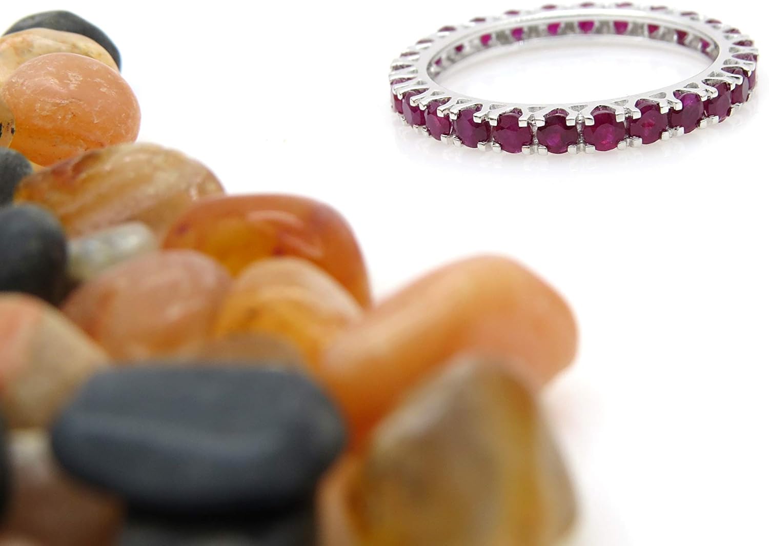 This lovely ring feature ruby in prong setting. All stones are Sparkling. Our product includes a complimentary jewelry box for safe storage and presentation.