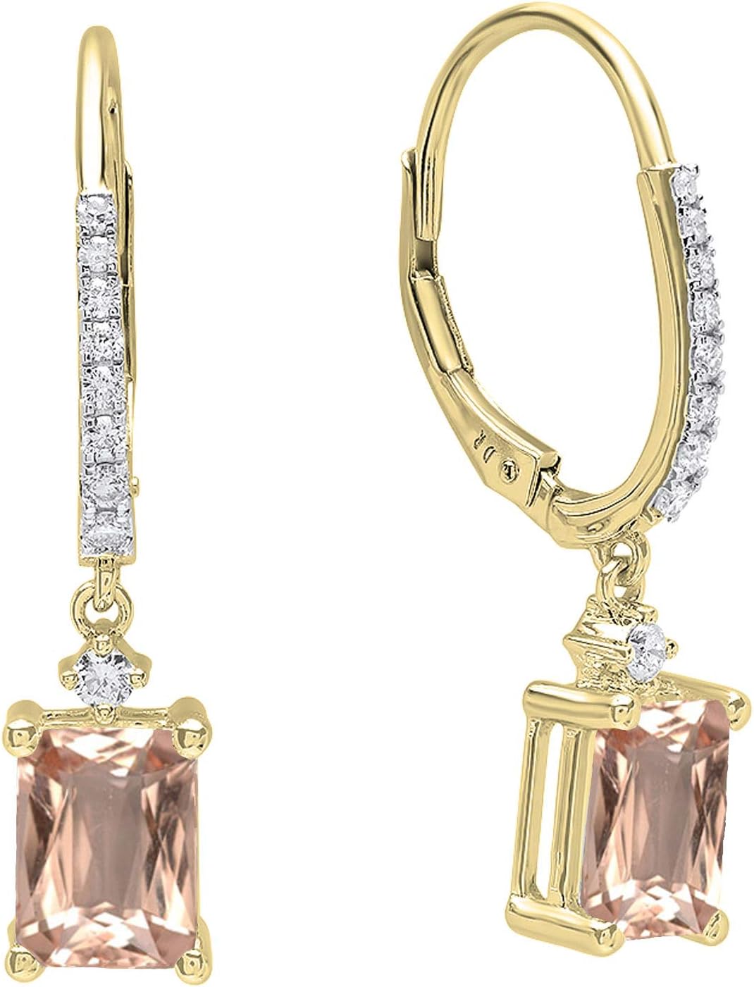 This lovely dangling earring feature 8X6 MM emerald cut gemstone & 0.35 ct. round white diamonds in prong setting. All diamonds are Natural & Non-Treated, Minimum diamond color is I-J & clarity is I1-I2. All stones are Sparkling. Our product includes a complimentary jewelry box for safe storage and presentation. SKU # DR9706-6259-14KY