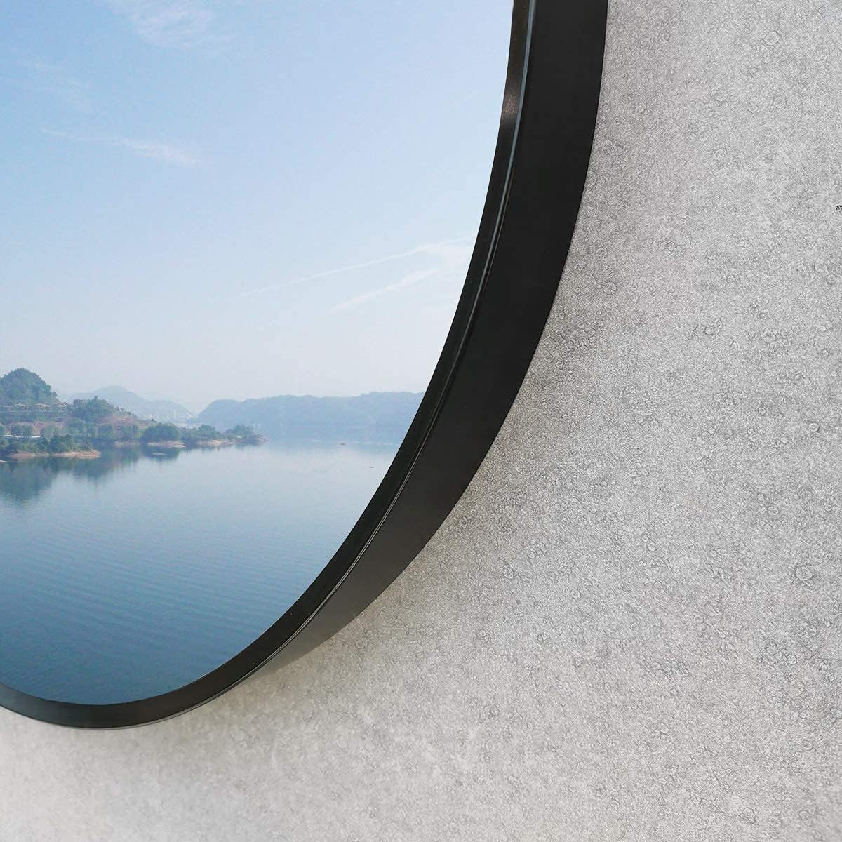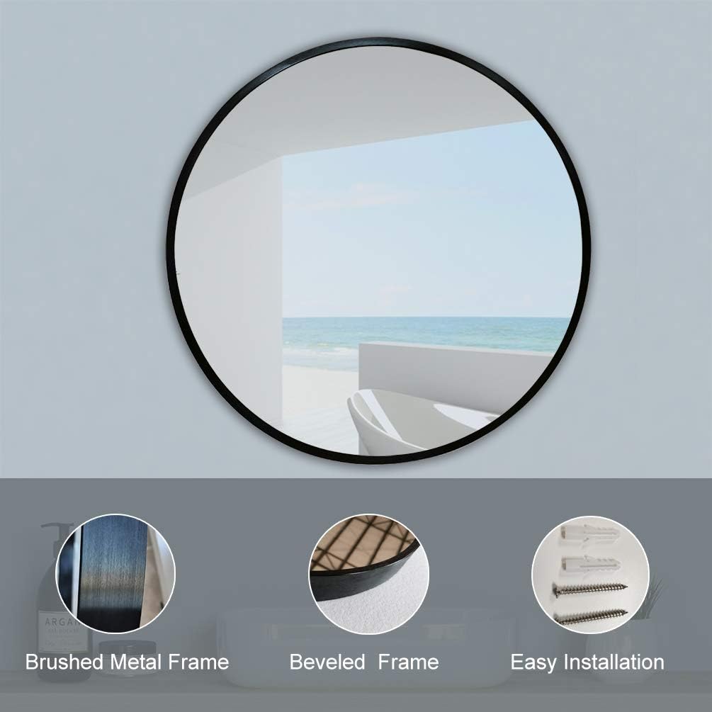 DETAILS:Color: BlackStyle: Round MirrorMirror Size: 24 InchPacking Size:25.5 x25.5x3 InchFrame Thickness: 1.7 InchNet Weight:10.5 LbFrame Material:Aluminum Metal FrameOther Material: Glass Mirror + MDF backplanePackage Content: 1 x Framed Mirror, 2 x Screw、2 x Plastic Expansion PipeFEATURES:Simple and delicate mirror, suitable for any indoor scene. The brushed metal aluminum frame is more beautiful.The mirror stands out as a perfect decoration for your home.