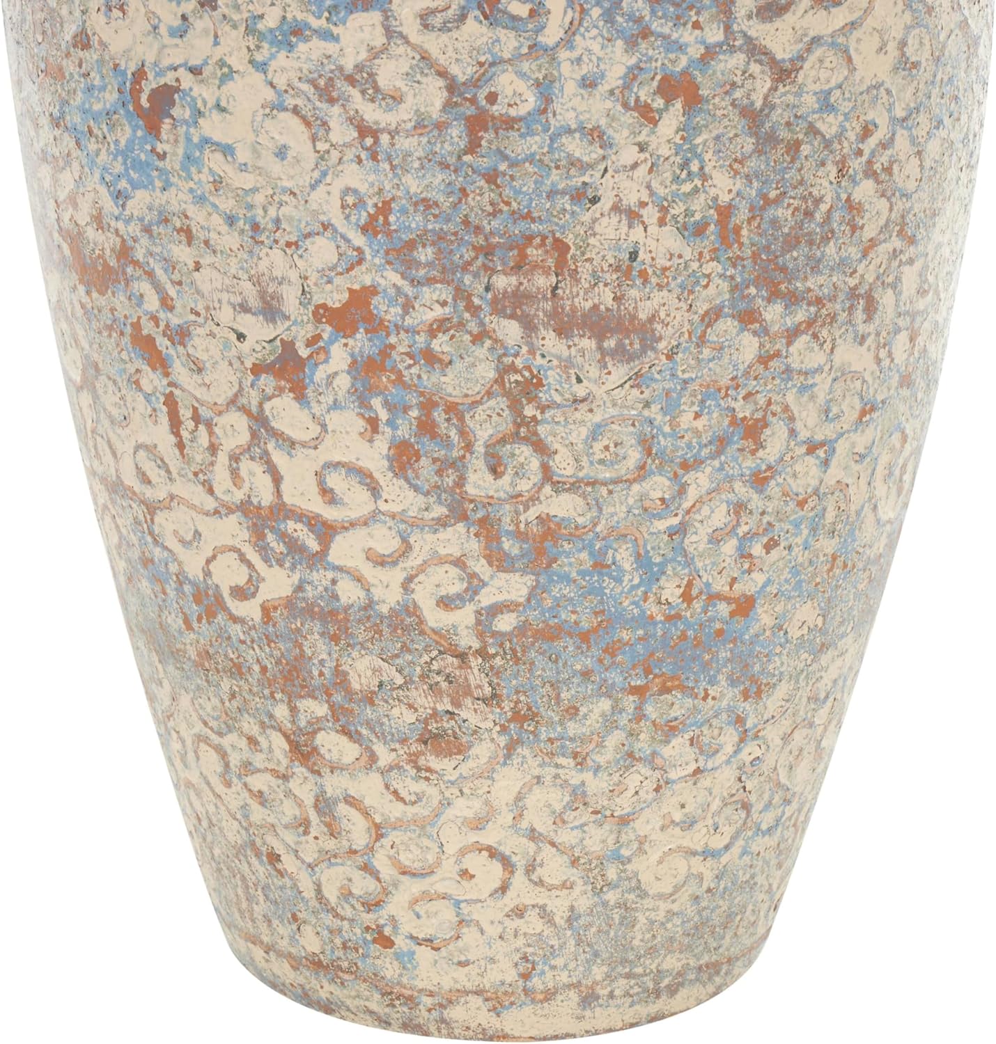 Adorn your mantle or dining table with this antique vase, filled with fresh floral or greenery, to create a timeless centerpiece that enhances your home decor. Designed with felt or rubber stoppers at the base that prevent scratching furniture and table tops, as well as sliding around. This item ships in 1 carton. Suitable for indoor use only. This item ships fully assembled in one piece. Made in Indonesia. This is a single beige colored vase. Farmhouse style. Vase has a 5 in mouth opening.