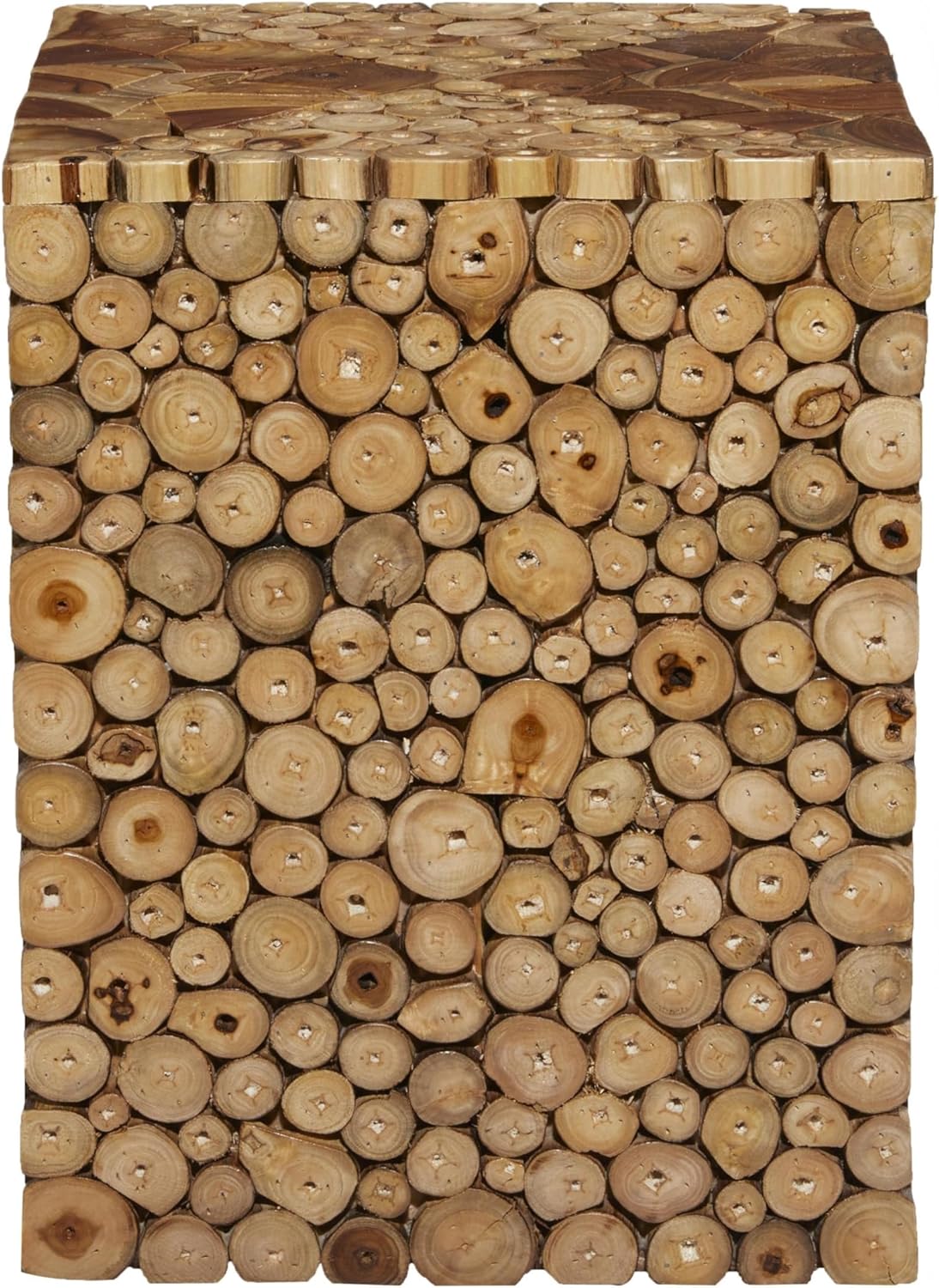 This brown end table will bring a distinctive style to your home, particularly if you favor a naturalist-inspired decor. This item ships in 1 carton. The one-of-a-kind item you have purchased is made from the stumps and unused trunks of harvested teak trees. This teak comes from ecologically managed forests. Once the tree is harvested, the remaining stumps must be removed to make space to plant replacement trees. In the past, these pieces would be harvested and then burned to dispose of them, which created pollution. Today we use these tree stumps and trunks to create beautiful, handcrafted pieces for your home. Coloring, cracks, and shapes will vary between items. Each one is unique and the artisan works to bring out the inner beauty within the tree to become a cherished piece of art for your home. Suitable for indoor use only. This item ships fully assembled in one piece. Due to the live edges of the piece, each is unique, so no two products will have an identical pattern, shade, or cut. Maximum weight limit is 100 lbs. Made in Indonesia. This is a single brown colored end table. Contemporary style.