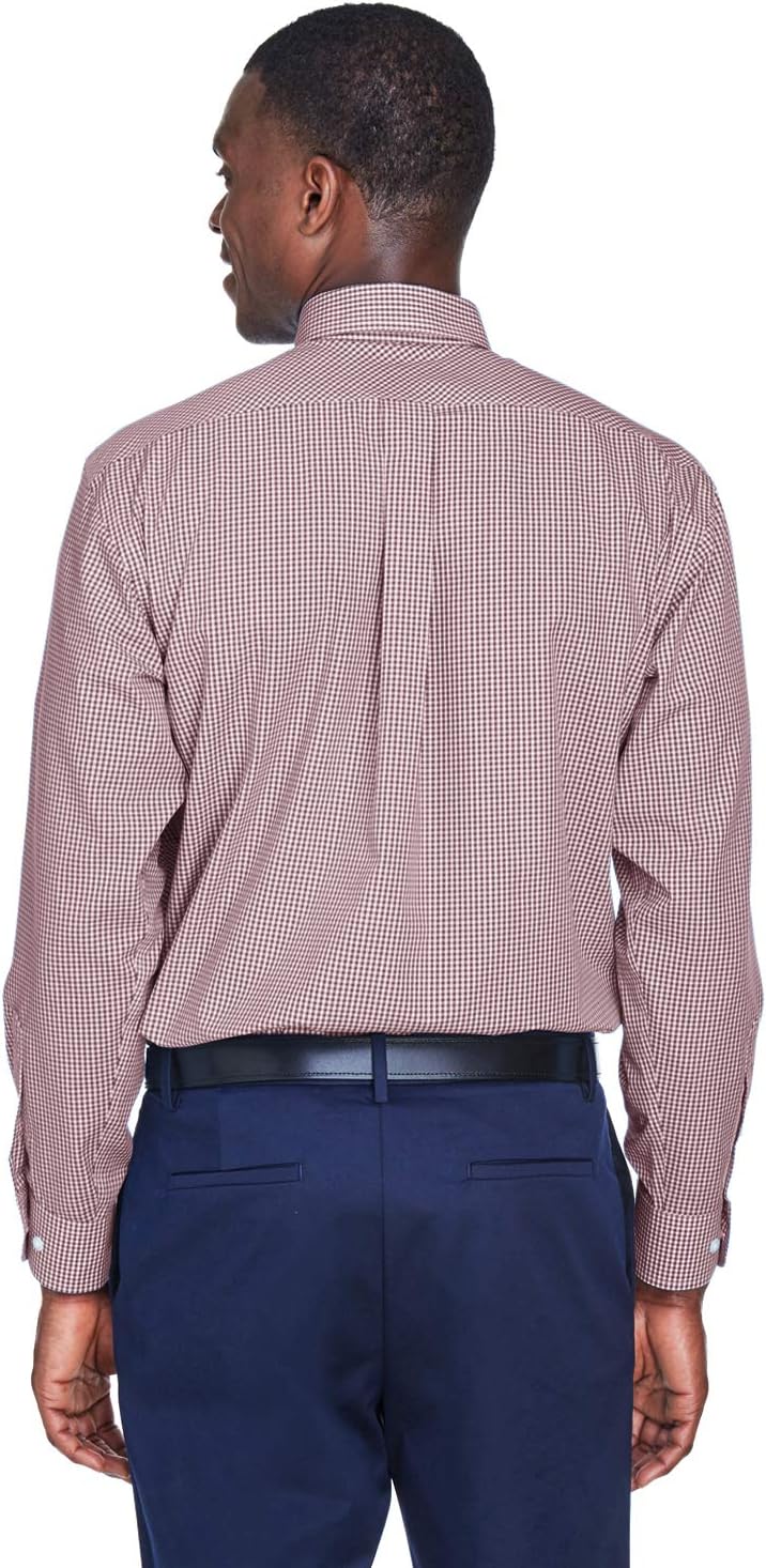 3.4 oz., 55% cotton, 45% polyester; Fine yarn count shirting; True Non-iron performance straight from the dryer; stain release finish; Classic Fit for professional appearance; Patented pucker-free taped seams; Fused collar cuffs and placket; Split back seam with bias cut back yoke; rolled button-down collar; adjustable Comfort Collar for up to an inch of stretch at neck; left-chest pocket; pearlized buttons;