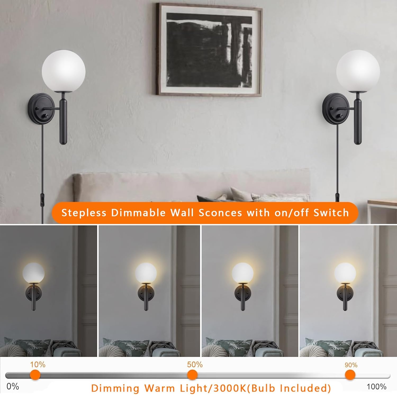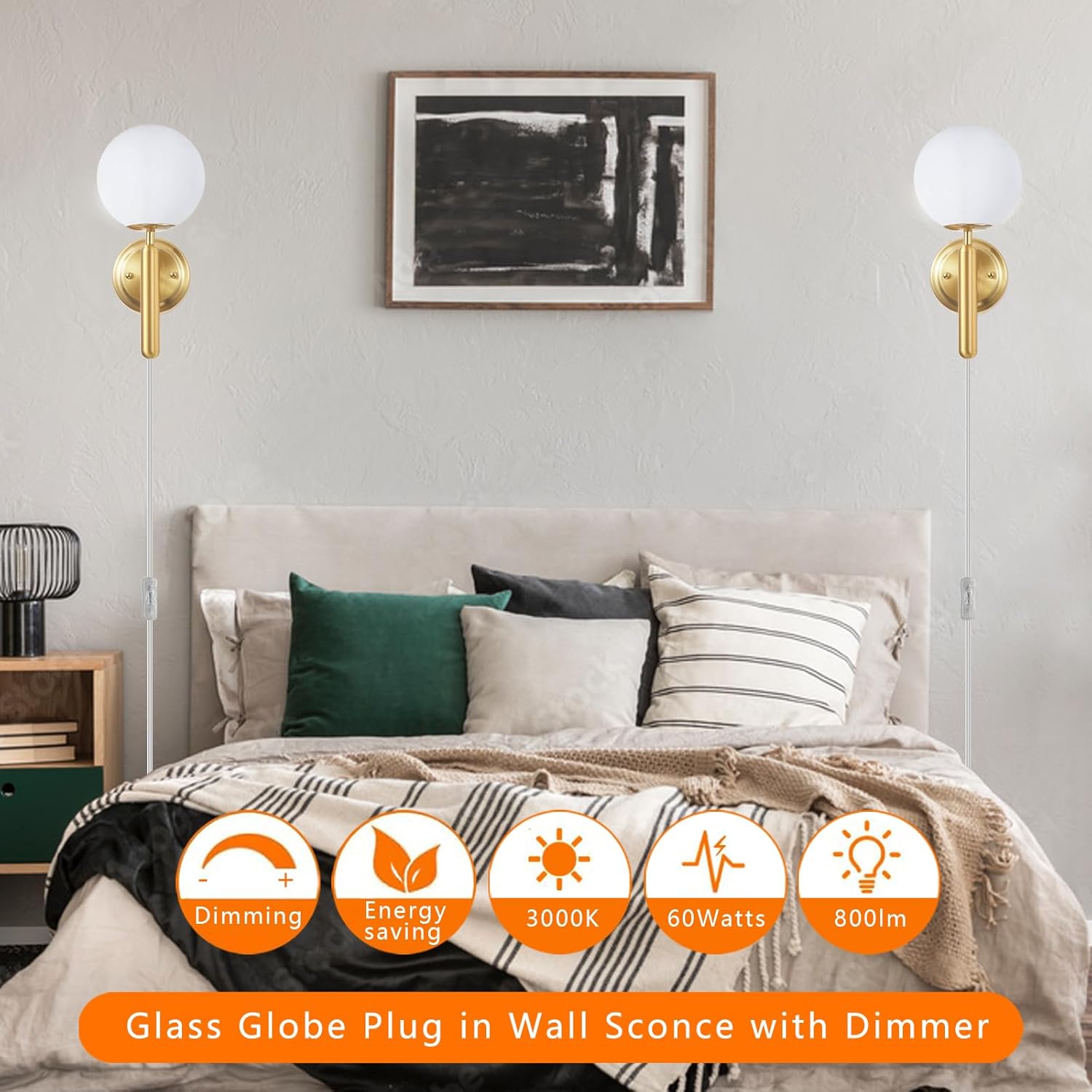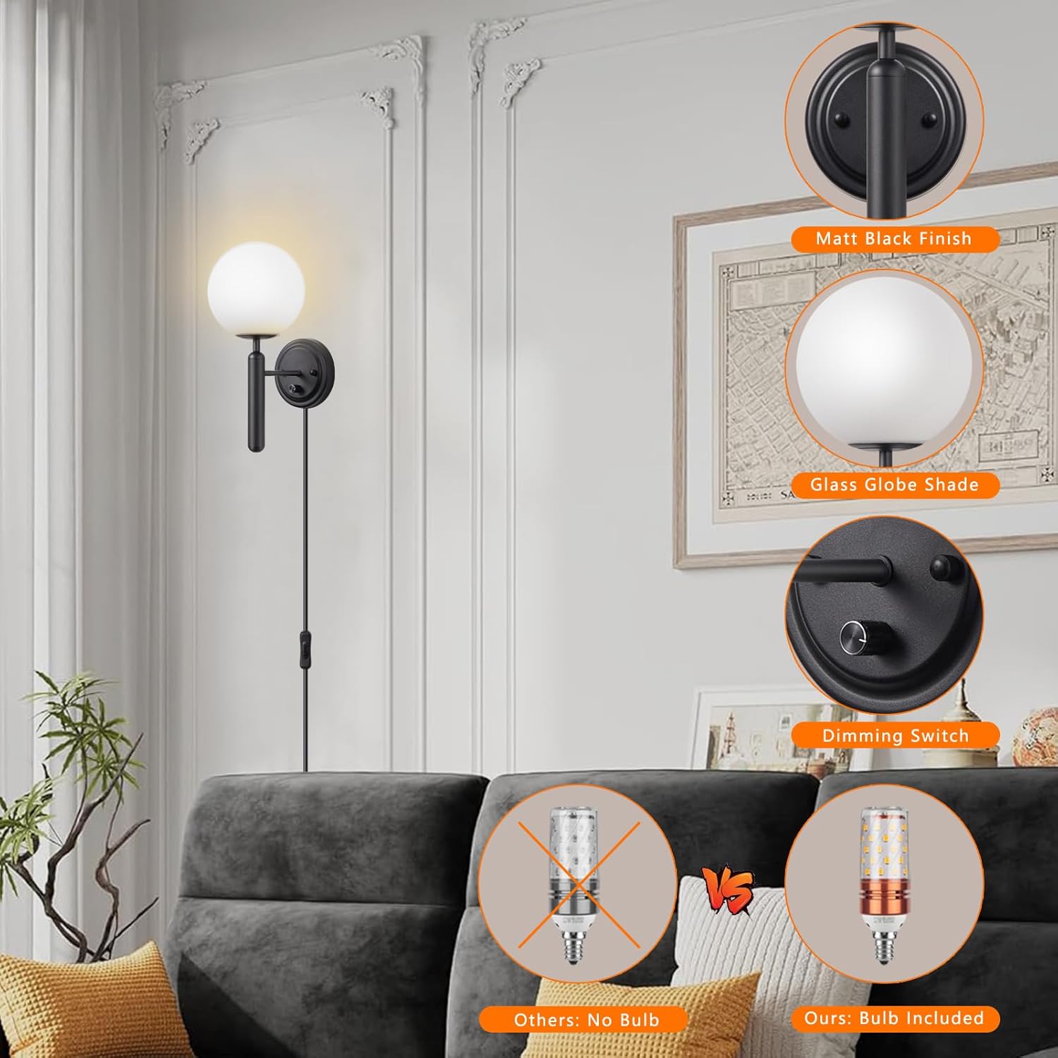 | Embellishment | Plug in Wall Sconces with Glass Globe |