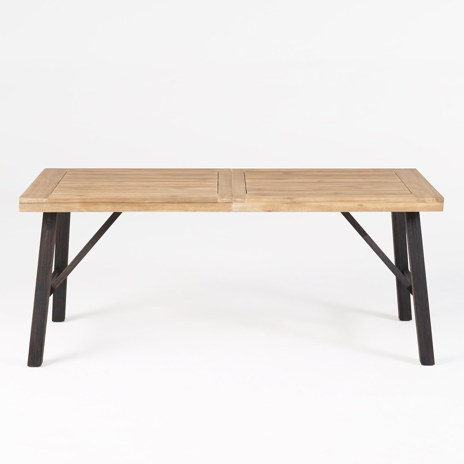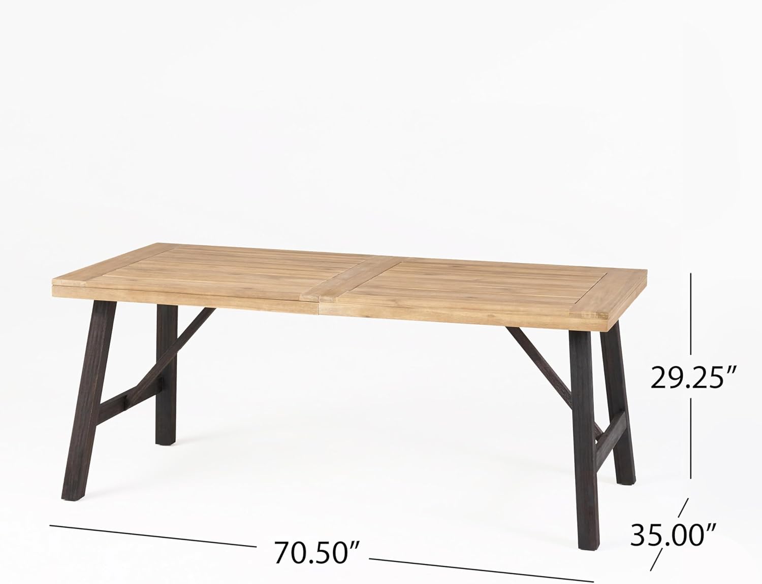 Product Dimensions: 70.5W x 35D x 29.25H in Color: Grey Material: Acacia Wood (Top), Iron (Frame) Weight: 61.73 lbs Assembly Required: Yes Weight Capacity: 300 lbsEnhance your outdoor dining experience with the DINING TABLE. Made from high-quality laminated acacia wood, this table is built to withstand the elements, making it the perfect choice for your patio or garden. The slat panel design not only adds visual appeal but also allows water to flow through, promoting faster drying and enhancing the table's stability over time.The durable acacia wood is treated with an oil finish, ensuring that the table can resist harsh weather conditions, including sun exposure, rain, and wind. The grey finish complements any outdoor decor, while the simple, elegant slat design gives it a timeless look. Whether used for family dinners, social gatherings, or casual outdoor meals, the DINING TABLE offers a spacious surface and durable frame to accommodate your needs.Quick and easy to assemble, this table requires minimal maintenance and is built to last, providing you with a long-lasting and stylish outdoor dining option. With a weight capacity of up to 300 lbs, the DINING TABLE is designed to meet the demands of your outdoor lifestyle.