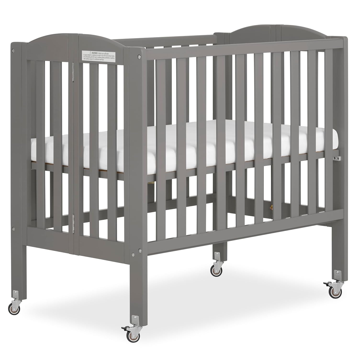 Product Description Sleek, compact, and thoughtfully designed, the Dream On Me 2-in-1 Portable Mini Crib brings modern style and practical convenience into any nursery or shared space. Its clean lines, smooth finish, and contemporary look ensure it blends seamlessly with a variety of décor styles, while its smaller footprint makes it the perfect choice for apartments, grandparents’ homes, or daycare centers. This versatile crib does more than just look good—it’s designed to adapt. The 2-in-1 functionality allows it to transition from a crib to a playpen, giving your little one a safe and reliable space to sleep or play. And when flexibility matters most, families can rely on our Patented Folding Mechanism (U.S. Patent #6817046 / #8479328 B2), which folds flat in seconds for stress-free storage and travel. Built from sustainable New Zealand pinewood, this mini crib combines natural strength with timeless appeal. It sits on **four smooth-rolling wheels—two locking and two non-locking—**so you can move it easily between rooms and lock it safely in place when needed. Parents can also feel confident knowing this crib is GREENGUARD Gold certified and meets ASTM and CPSC safety standards. It has been rigorously tested for over 10,000 chemical emissions and VOCs and finished with a non-toxic, lead- and phthalate-safe process—ensuring a healthy environment for your baby to sleep, play, and grow. Designed to grow with your child, the crib features two adjustable mattress height settings for newborn to infant stages. It also comes with a 1" compliant mattress pad, giving your little one a cozy and secure sleep space from the start. Measuring 40″ L × 26″ W × 38″ H, the crib offers comfort in a compact size, making it an ideal solution for smaller living spaces without sacrificing safety or convenience. The Dream On Me 2-in-1 Portable Mini Crib is where design meets practicality—beautifully styled, safety-certified, and crafted to give families portability, durability, and peace of mind. From the Manufacturer The Dream On Me, 2-in-1 portable folding crib, features a United States Patented rail system for ease in converting crib to playpen with one hand. The unique hinges allow the crib to fold flat for compact storage or travel. Included is the stationary (non drop side) rail design which provides the utmost in product safety. Made of solid Pine and having a beautiful Non-toxic finish, this portable crib is one of the most convenient portable cribs on the market. 1" Mattress pad and all tools for easy assembly included.