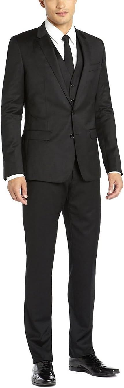 DTI DARYA TRADING GV Executive Black Label Men's Two Button Three Piece Wool and Silk Suit. JACKET: 2 button single breasted jacket, canvas chest, dual side vents, notch lapel, full lining in burgundy, 3 exterior pockets - 2 with flaps. The suit comes with 4 button vented sleeves featuring working buttonholes that still allow the jacket sleeves to be shortened or lengthened for up to 2 inches. VEST: 5 button vest matching the color of the suit with 3 outside pockets. PANTS: Flat front dress pants lined to just below the knee. Pant leg length unhemmed. These pants come with a standard 6" drop in the waist (e.g. a US 40R jacket will come with 34" waist pants). The waist can be altered in or out up to 2 inches. This suit is factory packed with a hanger and all tags are in place. Composition - 91% Wool 9% Silk. Made in Italy. Dry clean only. Please note: These suits feature working buttonholes.