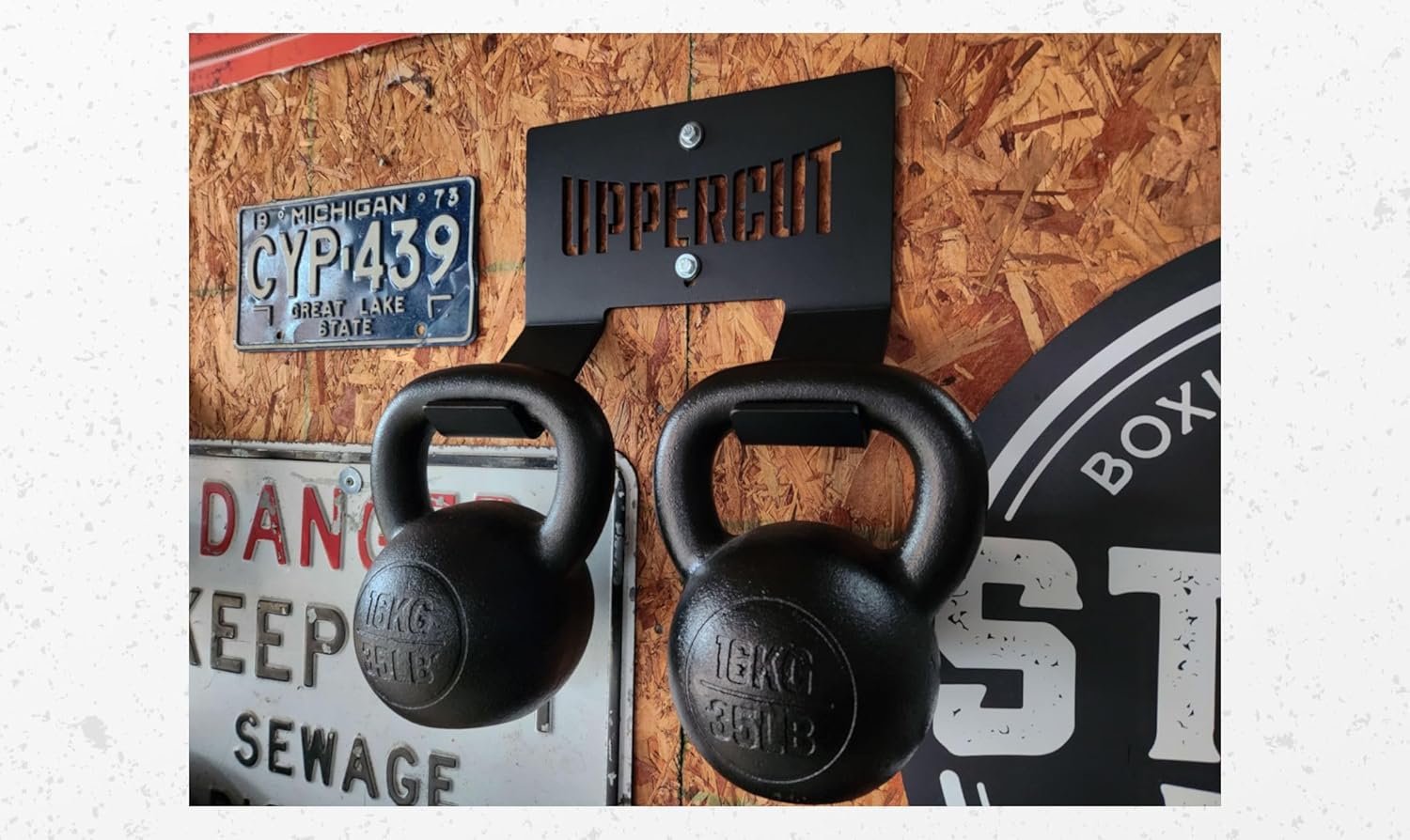 The Uppercut Sports Dual Kettlebell Hanger may not seem exciting to everyone, but we think a clean workout space is worth some praise. Store your kettlebells off the ground and free up some floor space. Manufactured from heavy-duty 1/4" steel and designed for secure mounting into wall studs, this hanger can easily hold two kettlebells totaling up to 150 lbs. Our kettlebell hanger only does one thing, but it does it twice.