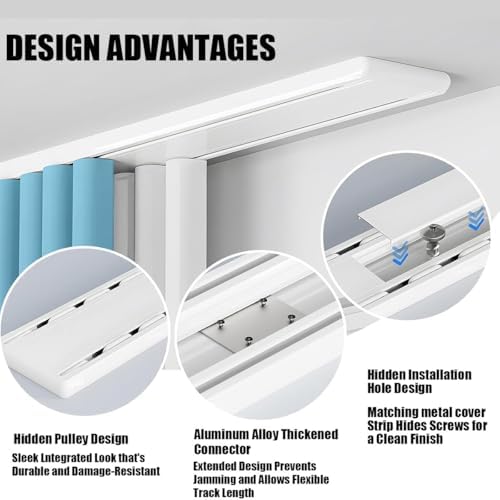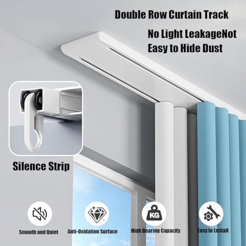 Experience the elegance and functionality of our white curtain track, designed to seamlessly integrate into any home decor style, from modern minimalism to Nordic charm. Crafted with a pure white finish, this curtain track enhances the aesthetic of your space while remaining versatile enough to complement various interiors. The surface of the track is treated with eco-friendly baking paint technology, ensuring durability against oxidation and yellowing over time. This means you can enjoy a beautifully maintained appearance without the worry of fading or deterioration. Our innovative hidden track design neatly conceals the pulley system, creating a lightweight and sleek visual profile. Combined with our ultra-silent sliding rail system, it provides a smooth and quiet operation, enhancing your overall experience. Ideal for small spaces, the harmonious blend of white tracks against white walls or light-colored ceilings minimizes visual clutter and allows your curtains to take center stage. This feature is particularly beneficial for creating a room divider in living rooms, bedrooms, offices, or even RVs and travel trailers. Included in the packing list are all necessary components: one curtain track, a complete set of accessories including mounting brackets, pulleys, connectors, and screws, as well as a free locating buckle to prevent the track from derailing. Elevate your home with our practical and stylish curtain track, perfect for any application where elegance and functionality are a must.