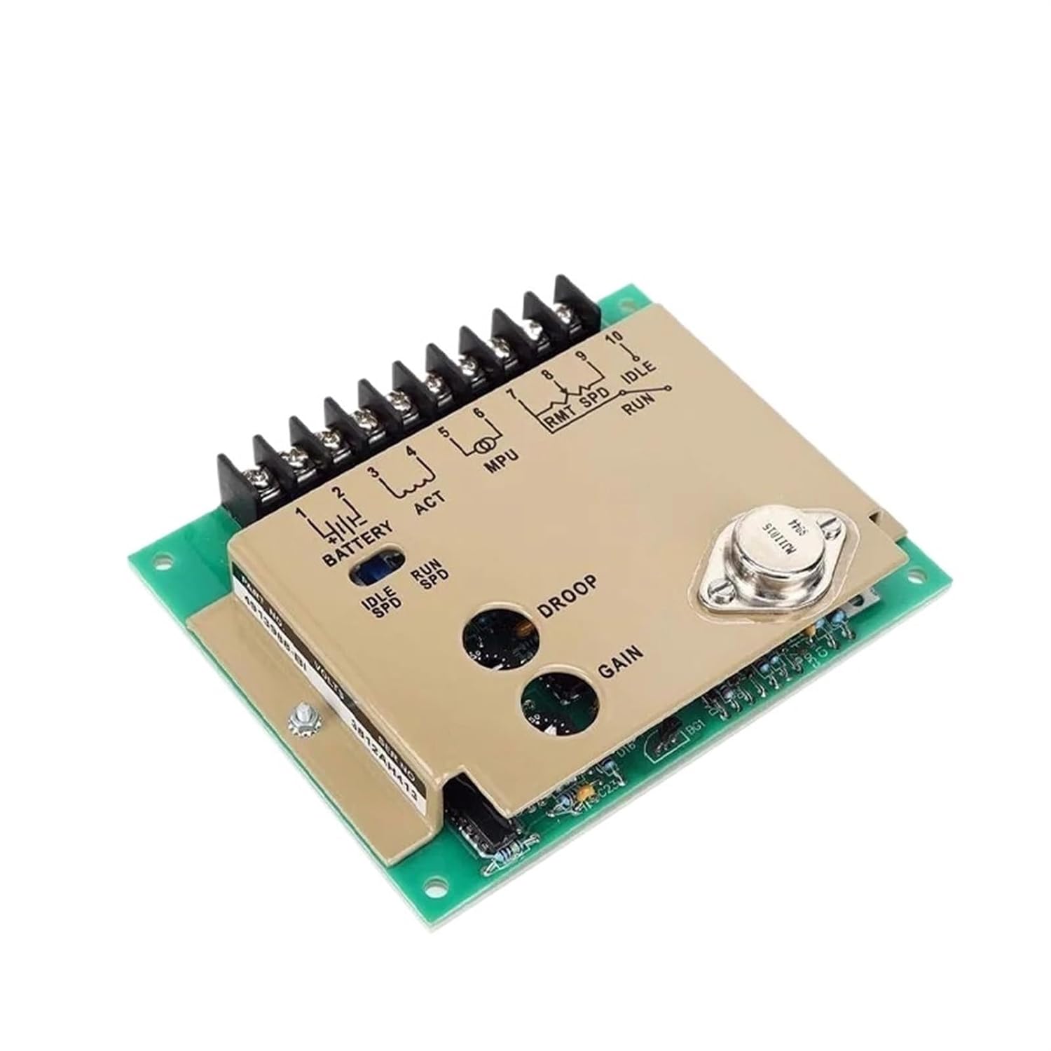 Speed Governor 4913988 Electronic Controller Diesel Generator Set Engine Control UnitFeature:1. IDEL is an idle speed adjustment potentiometer, forward rotation is rising, reverse rotation is falling.2. RUN is the running adjustment potentiometer, forward rotation is rising, reverse rotation is falling.3. GAIN is a gain-adjusting potentiometer, which has fast spin response and good reverse spin stability4. DROOP is a speed regulation (speed drop) potentiometer (the speed drop can be controlled within the range of 0 to 5% at full load)5. The product has which can make sure the stable performanceSpec:Item Type: Governor Speed Control BoardPower Supply Voltage: DC 24VConnect pin 1 to the positive pole of the battery and pin 2 to the negative pole of the battery.Pin 3, 4 is connected to the actuator.Pin 5 is connected to the positive pole of the speed signal, and pin 6 is connected to the negative pole of the speed signal.Pins 7, 8 and 9 are connected to external fine-tuning potentiometers, of which pins 7 and 9 are connected to both ends of the potentiometer and pin 8 is connected to the midpoint of the potentiometer.Pins 10 and 7 are connected to both ends of the idle / run switch. When it is connected, it is idle speed, and when it is disconnected, it is running.IDEL is an idle speed adjustment potentiometer, forward rotation is rising, reverse rotation is falling.RUN is the running adjustment potentiometer, forward rotation is rising, reverse rotation is falling.GAIN is a gain-adjusting potentiometer, which has fast spin response and good reverse spin stability. It is recommended to adjust between 7 grid.DROOP is a speed regulation (speed drop) potentiometer (the speed drop can be controlled within the range of 0 to 5% at full load), it is recommended to adjust between 1 grid.