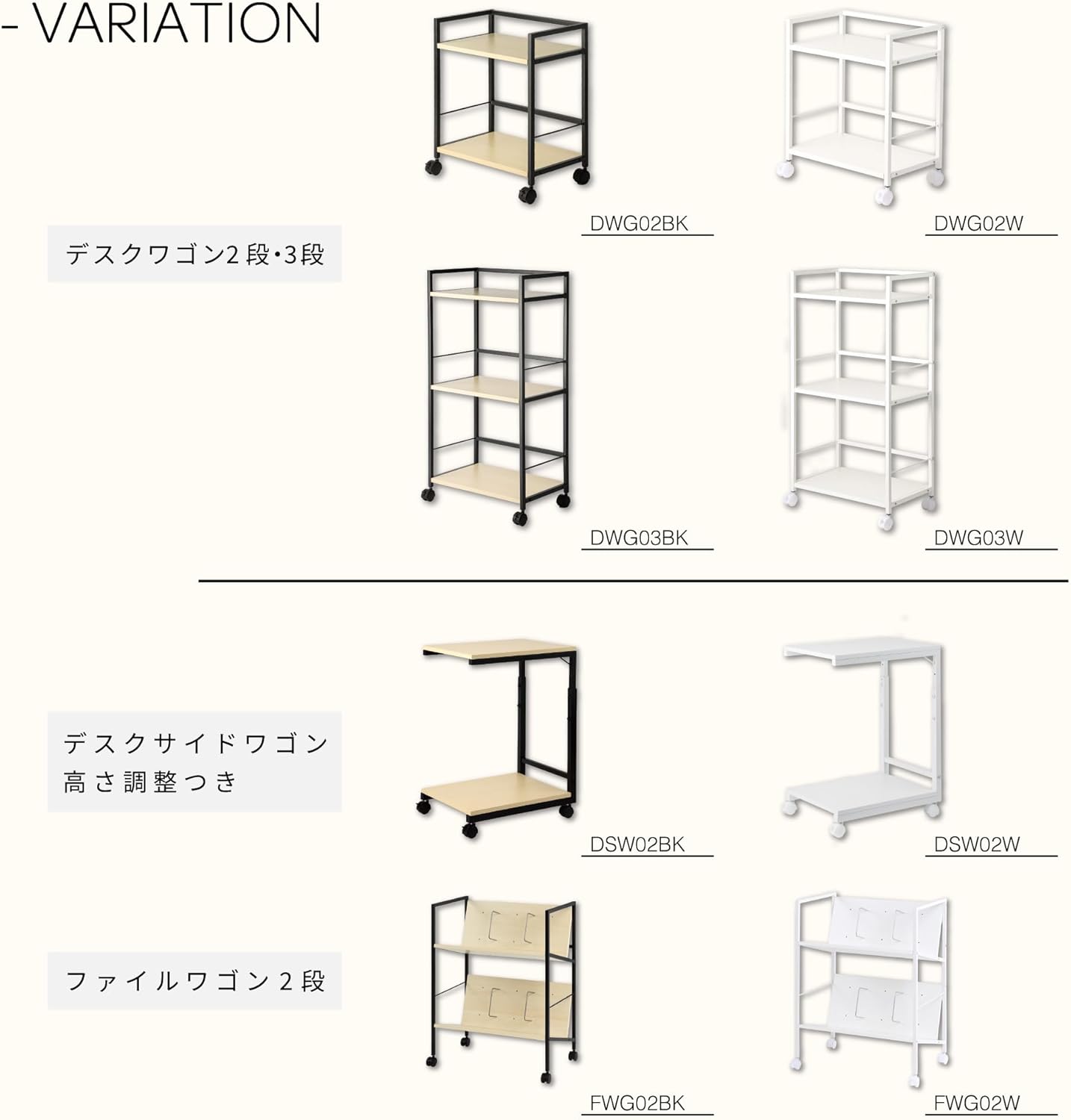 Asuka Desk Wagon Series DWG03W 3 Tier Desk Wagon (White) - 3-tier wagon with ample storage. Perfect for storing everyday items by your desk. A convenient product that can be easily removed and stored in a snap. - Comes with casters for easy movement. Even if you store a lot of files and documents, the casters make it easy to move around. Holds A4 files. Conveniently store tall items. ■ Recommended not only for desk side, but also on the sofa side. Keeps drinks and magazines within reach. It is also suitable for storage in many places, such as bathrooms and kitchens. ■ The all-white body makes it easy to match with the office and room. ■ Height of main unit is 87.5 cm The height of the standard desk is 27.6 inches (70 cm), and the height is easy to match with your desk. ■This product is self assembled. Please read the included instruction manual carefully and assemble the product correctly. Specifications: External Dimensions (W x D x H): 17.7 x 11.0 x 34.3 inches (450 x 2Weight: Approx. 13.6 lbs (6.2 kg). Load Capacity: Top Plate (Top) (Medium) (Bottom) 22.0 lbs (10 kg) Each Material: Top Plate (Top) (Medium) (Bottom) Double-sided Melamine veneer / Particle Board (Frame) Steel, Casters: Polypropylene. Accessories: Instruction manual (English language not guaranteed), hex wrench, spanner. Variations: Desk Wagon Series DWG02BK/White Desk Wagon 2-Tier Black DWG02W DWG03BK/White Desk Wagon 3-Tier Black DWG03W DSW02BK/White Desk Side Wagon with Height Adjustment, Black