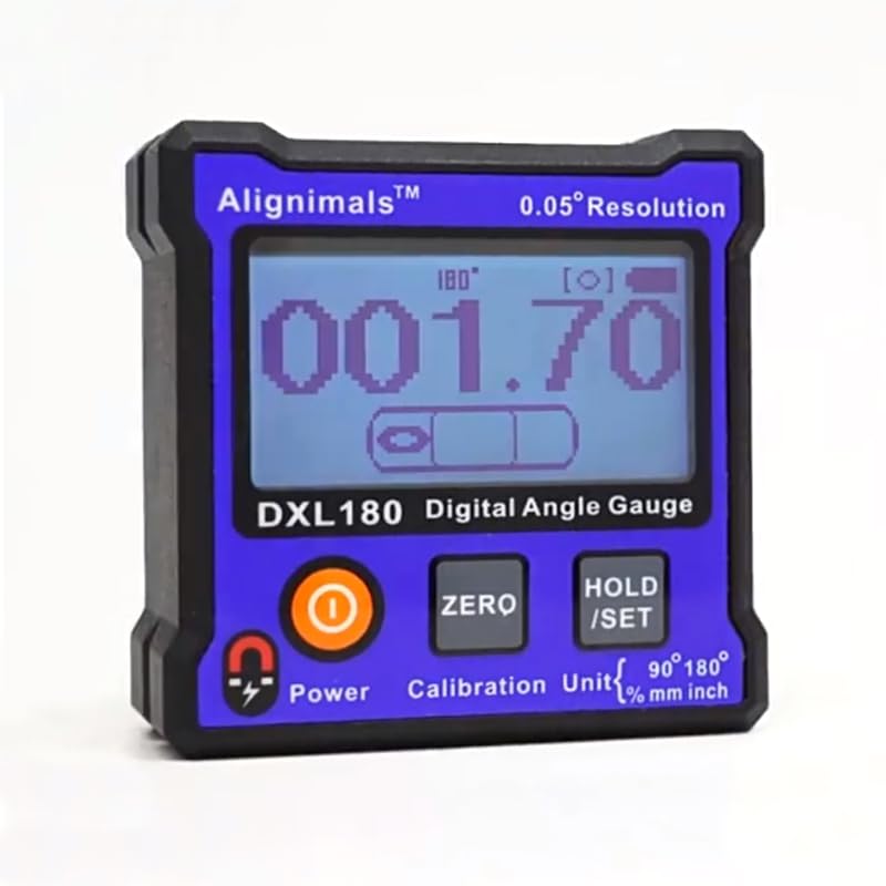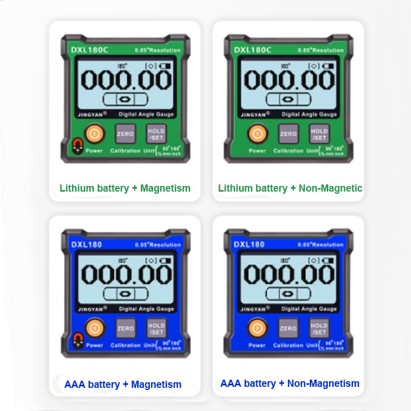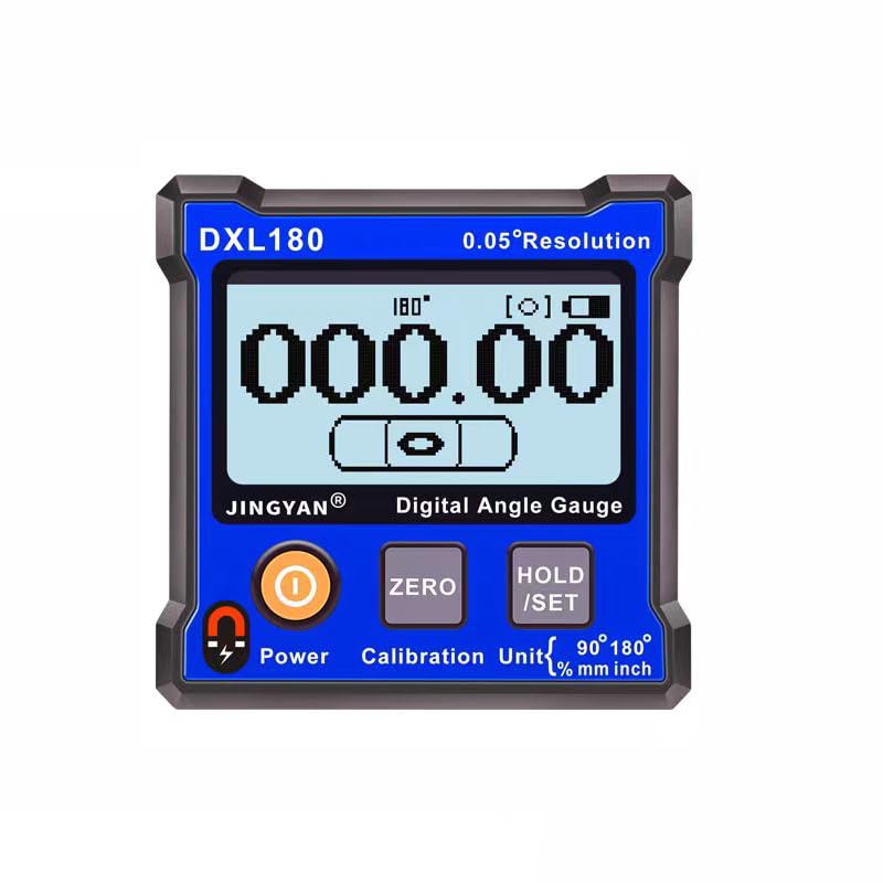 Description: Calibration Unit: 4X90 °, 2X180 °,%, Millimeters/Meters, Inches/Feet Measuring range: Angle 90 °: 4x0-90 °; Angle 180 °: 2x0-180 °; Slope%: 4x0-199.99%; Millimeter/meter: 4x0-1999.9mm/m; Inches/Ft: 4x0-24.00 "/Ft Angle Resolution: 0.05degree Angle accuracy: ± 0.1 °: 0 ° to 1 °, 89 ° to 91 °, 179 ° to 180 °, ± 0.2 °: Other angles Power Waste: Run time: 15mA Operating/Storage Temperature: 0 to 50℃ Operating/Storage Humidity: <85% relative humidity Operation/storage height: 6562 feet(2000m) Power supply: 2pcs AAA battery. Size: 60*60*31mm Characteristics: 1) high precision +/- (0.1 ° + 1%), high resolution 0.05degree 2) Double and single ax with user-friendly LCD screen angle display 3) Batteries 4) In the form of V Metal shell for easy to install at the corner or pipe. 5) With Magnetic base/Non-magnetic base 6) LCD large screen digital display, backlight available at night Application: - Interior decoration - Zone of construction - plumbing - floors and stairs - The Woodcraft Package: 1 x DXL180 Digital Angle Inclinometer with Magnetism