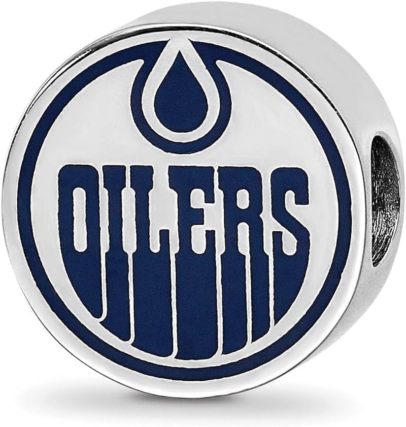 The amazing LogoArt Sterling Silver Edmonton Oilers Oilers On Puck Enameled Logo Bead Charm, crafted in 925 Sterling Silver . This product measures 14.70 mm wide, 14.70 mm long.