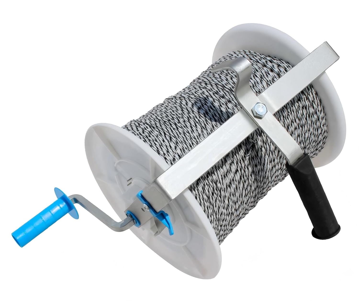 High tensile wire, poly wire or tape. Allows for insulation from current of fence. Enables easy storing of electric fencing and can be used at the start and end of fences. Highly versatile, can be used with different types of lines! Locking device and ability to hang onto fences.