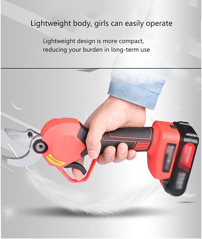 Product name: 21V lithium battery pruning shears Cutting diameter: 30mm soft branches Working time: 3-4 hours Battery capacity: 21V2000mAh Power supply mode: AC (rechargeable) Product weight: 2238g Charging time: 2-3 hours Product size: 310* 270*91mm Note: Due to different shooting lights and monitors, the product pictures will have different degrees of color difference. Because the product size is measured manually, there is a difference of ±1cm, the data is for reference only, please refer to the actual product, hope for understanding!