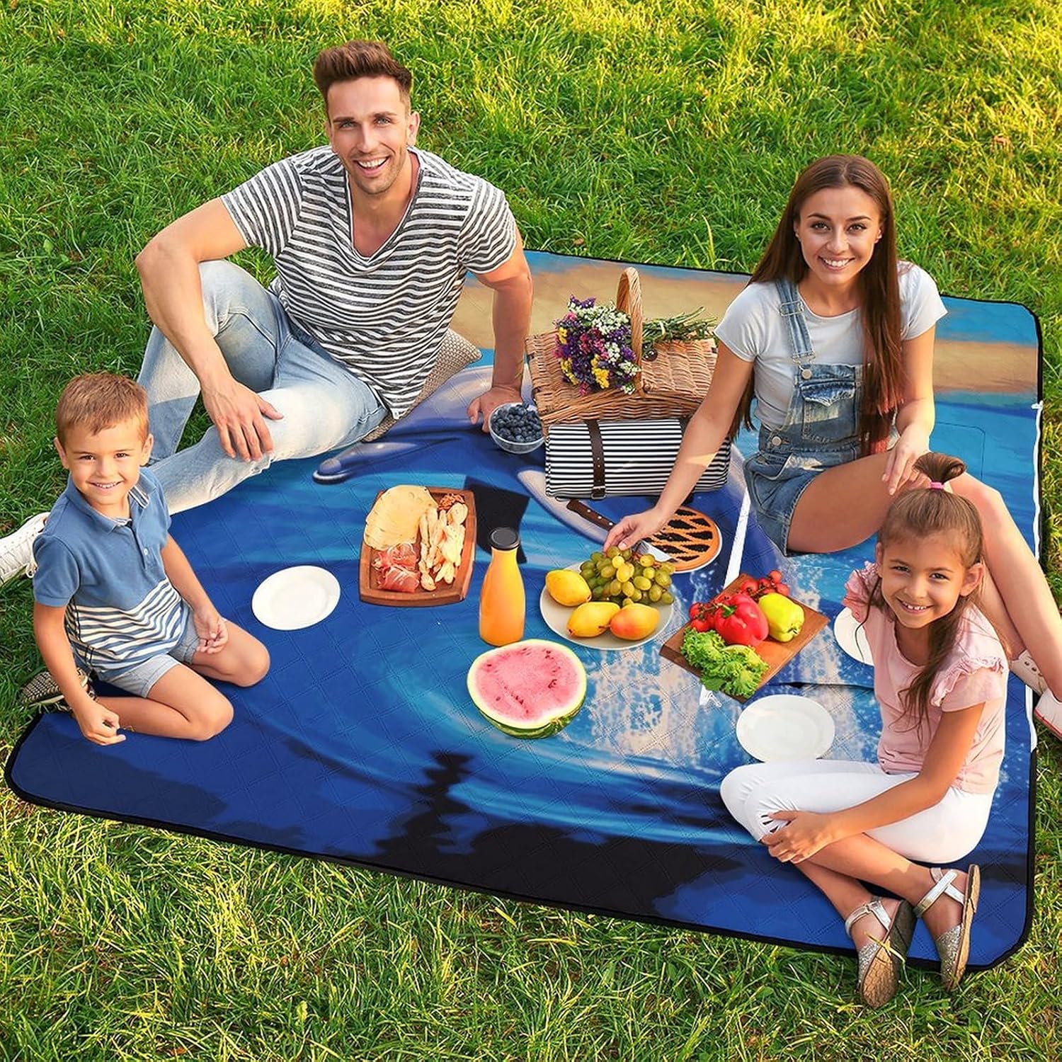 The picnic blanket ,we've only used the highest quality materials, so every picnic is an experience .The underside lining is very sturdy and therefore suitable for every surface. No more worrying about dirty or wet bottoms when you are sitting on damp grass. The Elegant Dolphin blanket protects you from water, dust and dirt.A large capacity bag and a picnic blanket, 2in1. It has a large capacity and one bag can hold everything you need for going out. You choose the place you want to lie down, and this bag can be turned into a comfortable picnic blanket in seconds also it can fold into tote bag, which is waterproof, sand-proof and wear-resistant.Therefor,you can take it to nearby parks, campuses, beaches or lawn, anywhere you want to lie down.