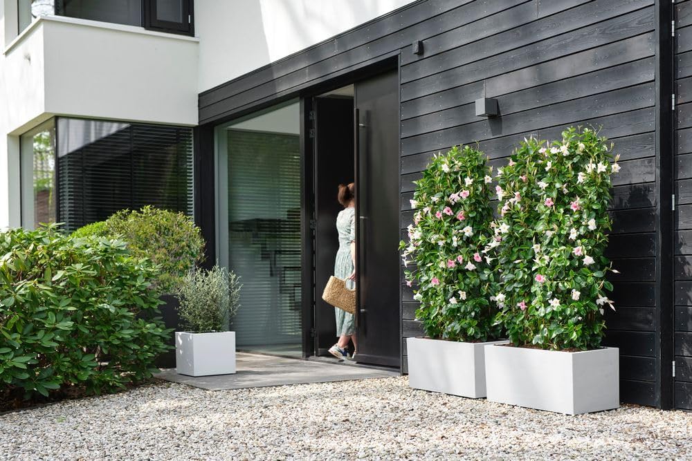 The vivo next plant containers give your garden or home a fresh look thanks to their modern design and rectangular shape. Thanks to the integrated water reservoir, you can easily supply your plants. You can use it indoors and outdoors with the help of the included plug. Thanks to the integrated wheels, you can easily move the plant container. You can rest assured that this flower pot was made with love for nature. It is made from recycled plastic, has been produced with wind energy from our own wind turbine and is also fully recyclable.