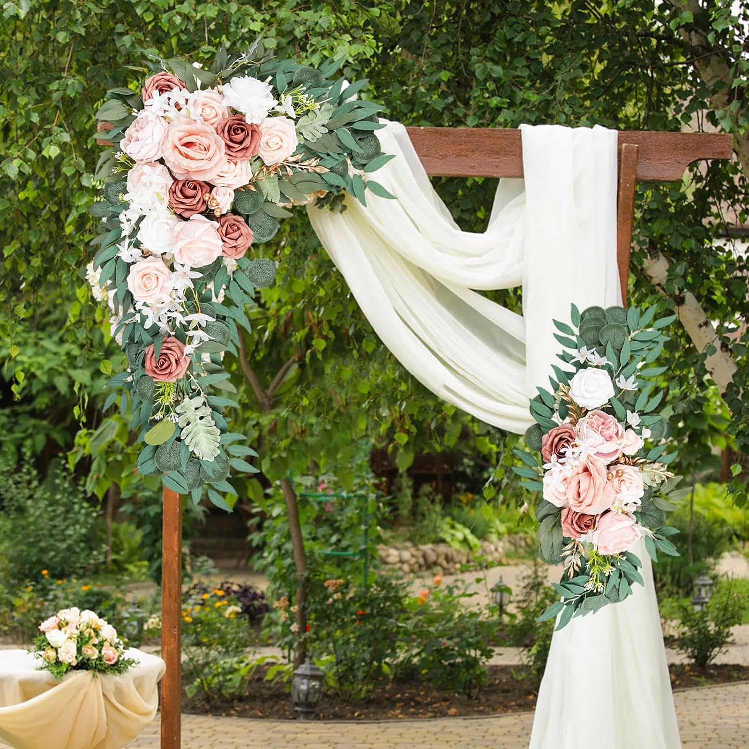 Emivery is a brand especially meet your decoration need for Artificial Flowers, Wedding, Party and Home.Specifications:Product Name: Pink arch flowers Suitable: Wedding ceremony and reception, backdrop decor, baby shower, party, birthday, prom floral decor Material: Silk, Foam Color: Dusty pink Small flower swag size: 23.62 x 11.8 inch Large flower swag size: 31.49 x 19.68 inch Package includes:1 x Wedding flower swag set (2pcs) IF YOU HAVE ANY OTHER PROBLEM WITH THIS PRODUCT, WE DO APPRECIATE YOUR SUGGESTION FOR PRODUCT. THANKS!