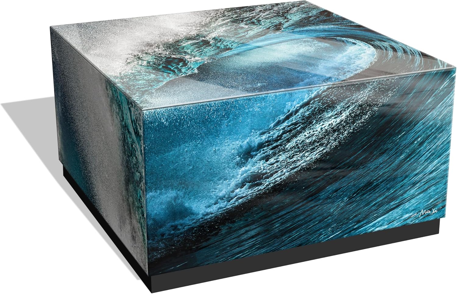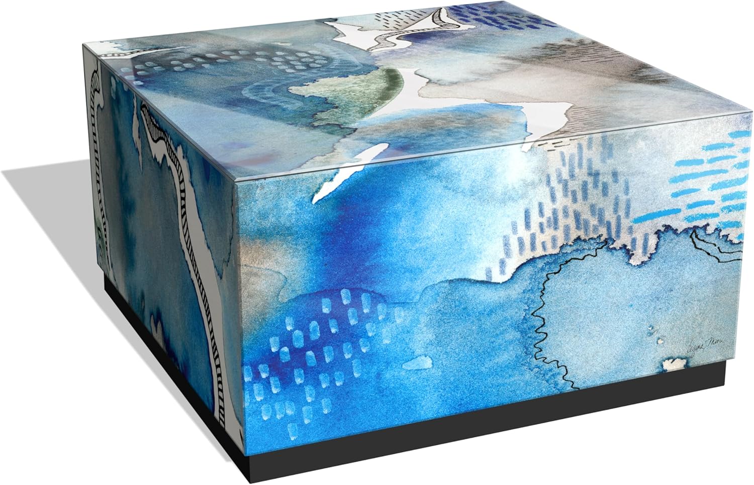 Empire Art Direct has a long rich history of manufacturing wall art and home furnishings since 1948. EAD has a variety of wall decorative for all moments in your life.This beautiful piece uses different shades and shapes of blue and grey to create an incredible work of art. Imagine staring out at the horizon, watching the ever-changing sky no knowing if the rain is leaving and the sun is rising or if it is the other way around. The sun setting while getting lost in an endless maze of shinny and colorful shades of blue from cerulean to slate to sky to stone and more as the rain clouds roll in. Created by artist June Erica Vess, this piece evokes the drama and unexpected peace and calm before the storm. Add an artistic flair to any room with this beautiful and functional 36" x 18" x 36" cocktail table of reverse printed beveled edge art glass on a black plinth base that enhances its vibrant colors and textures. Create a cohesive designer look by purchasing two or more coordinating lamp tables.