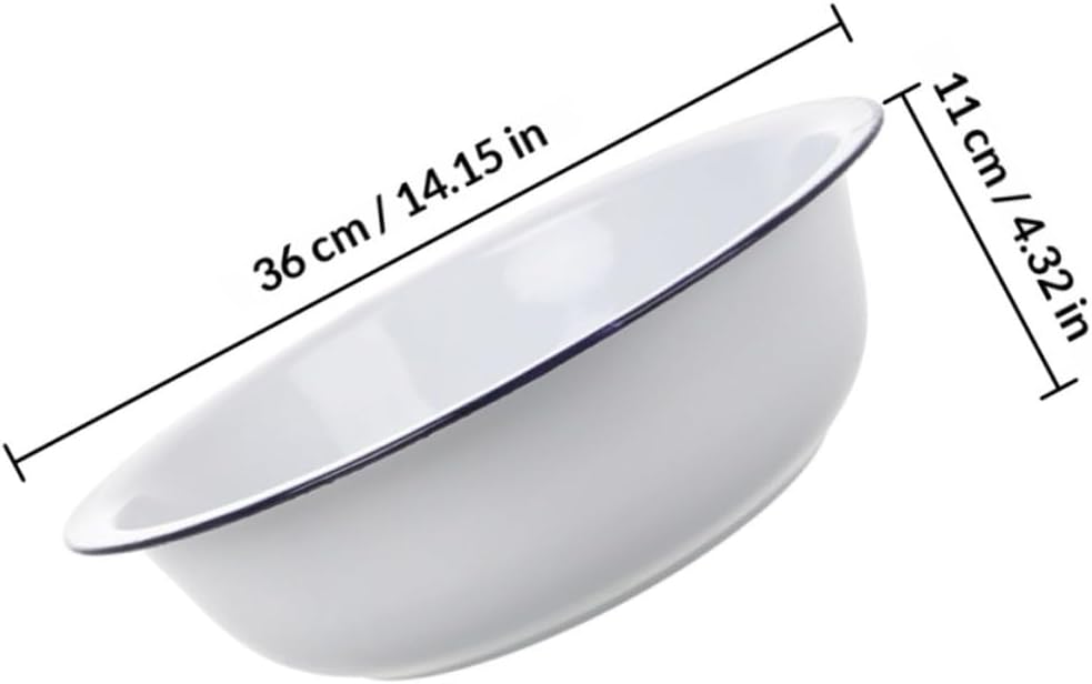 Package Include 1 x enamel basin Characteristics -Easy maintenance: the smooth enamel surface is easy to clean enamel bowl round -Timeless vintage design: the basin's classic vintage look adds a touch of retro elegance to your home decor enamel pie pan -Color:White -Product Info:Enamel basin - and : constructed from enamel, this basin is designed to resist corrosion and withstand high temperatures soup bowl -Material:Enamel -Generous capacity: its large size makes it for kitchen tasks like washing vegetables and kneading dough, as well as serving as a vintage soup and wash basin -Multipurpose use: ideal for various uses including washing vegetables, face, and clothes vintage serving bowls -Size:36.00X36.00X11.00cm/14.15X14.15X4.32inGoods Descriptionenamel plate The enamel coating resists stains, ensuring your basin remains fresh and clean after each use.enamels soup basin The enamel basin's retro aesthetic brings a charming feel to your kitchen.large enamel bowl Use it for mixing ingredients, washing produce, or even as a serving bowl for large gatherings