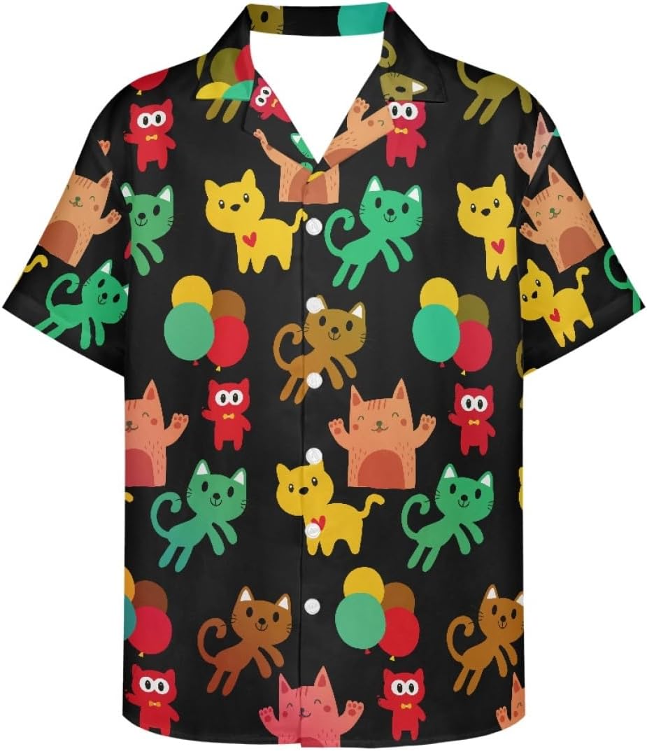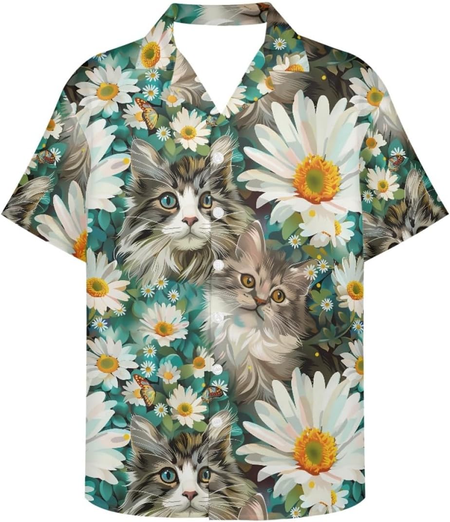 ENLACHIC Men's Cute Cat Printed Short Sleeve Button Down Summer Casual Birthday Beach Shirts